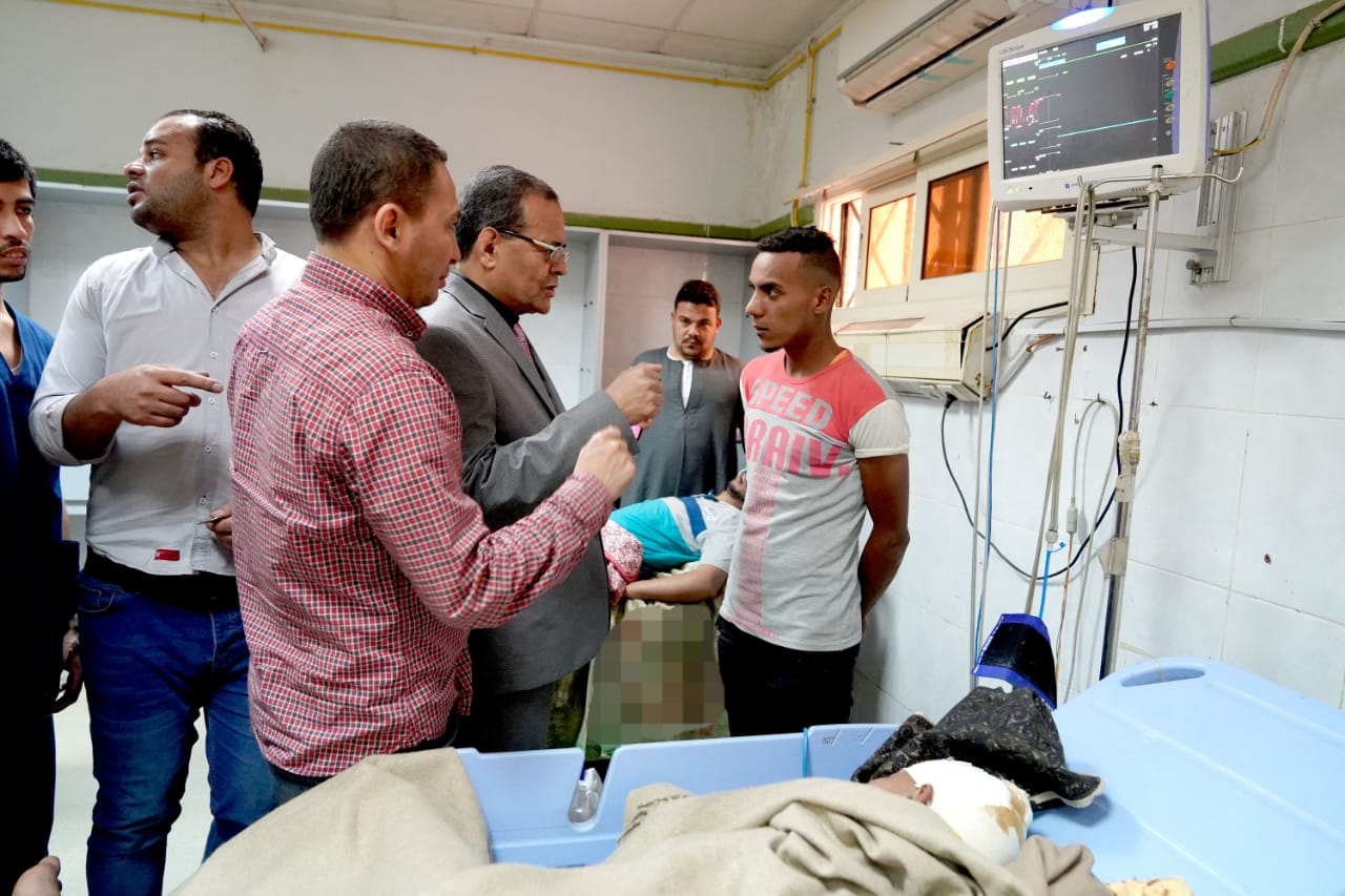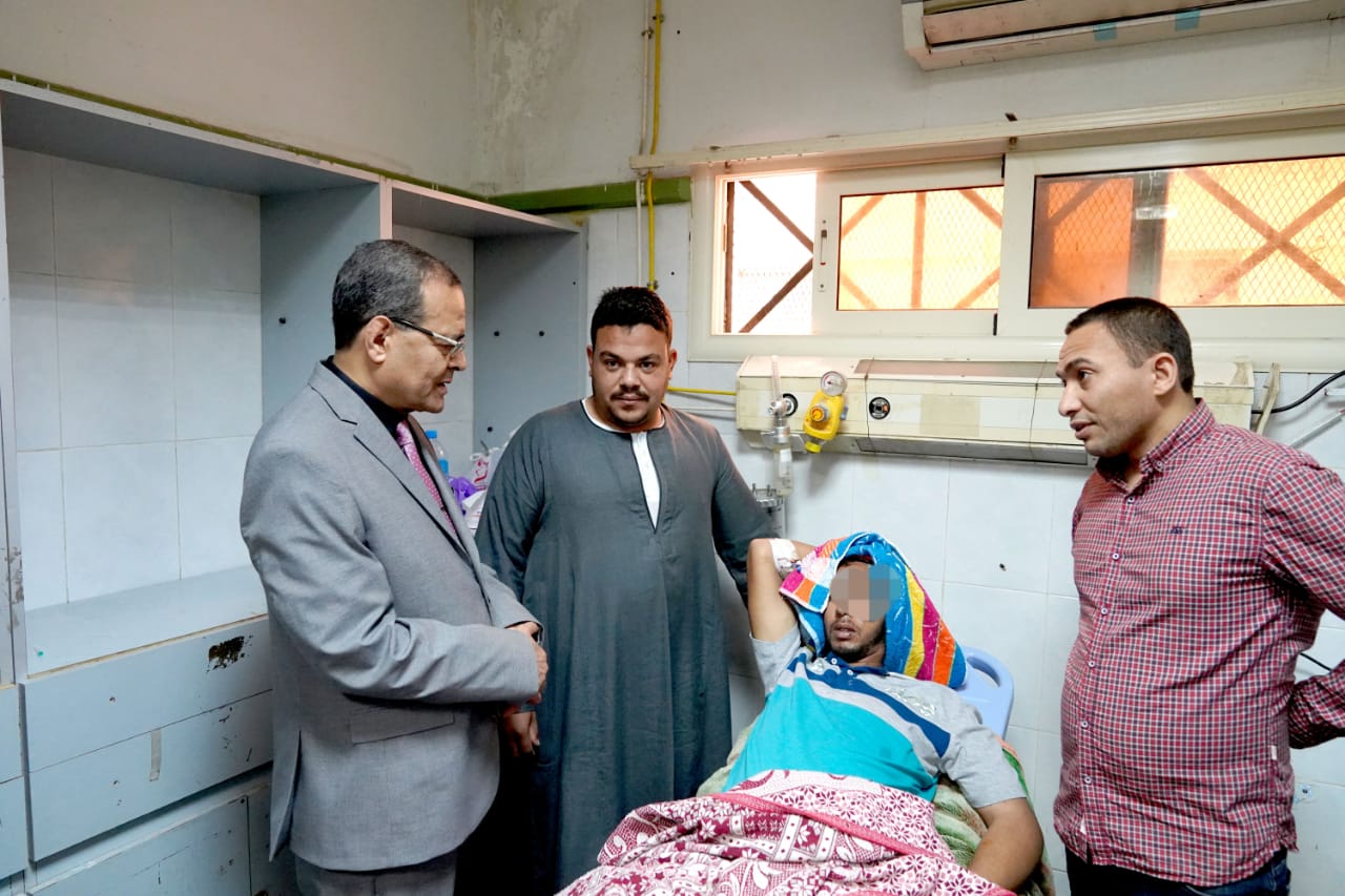 وتابع أن الزيارة تضمنت قسم الاستقبال العام ووحدة الانعاش الرؤى والقلب للاطمئنان على مصابي حادث الطريق الصحراوي الغربي وعددها ٤ حالات، ثم توجه بعدها الى قسم العناية المركزة للتخدير لتفقد عدد ٤ حالات حرجة لنفس الحادث.