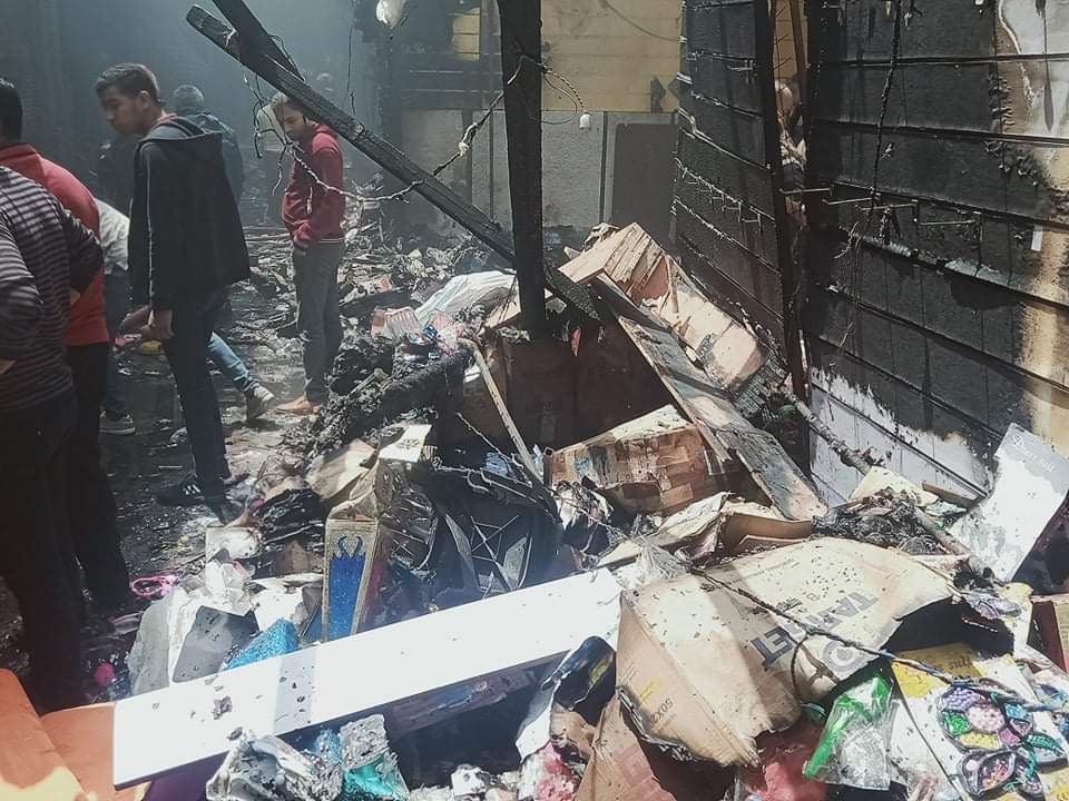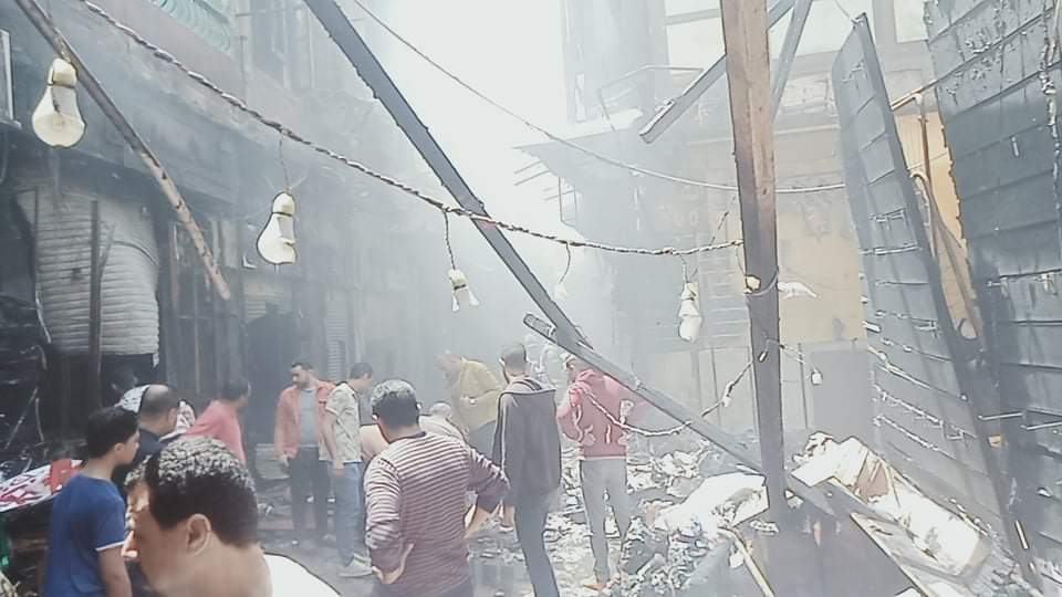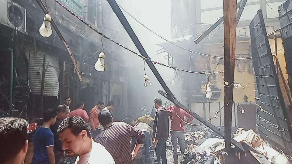 تقرر إخلاء عقارين من السكان بعد امتداد الحريق لهم وجرى إخلاء السوق وفصل الكهرباء عن المنطقة وجرى التعامل مع الحادث وتبين أن الحريق شب فى محال بيع البلاستيك ومحال الورق.