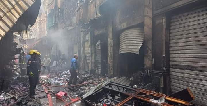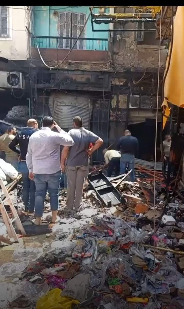 وأكدت التقرير من خلال المعاينة الأولية أنه تبين حريق بمحل بلاستيك بسبب ماس كهربائي وامتداده إلى ١١ محل مجاورة ومخزنين، مما أسفر عن تفحم محتوياتها وتصاعد ألسنة الدخان، واحتراق عقار وإخلاء عقارين آخرين، وقدرت الخسائر الأولية بملايين الجنيهات واحتراق المحلات بالكامل بسبب عدم وجود وسائل إطفاء وحماية مدنية