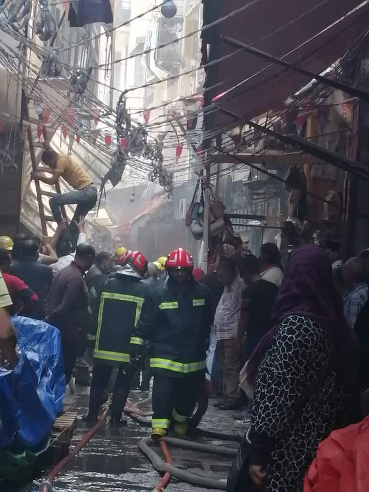 وتقرر إخلاء عقارين من السكان بعد امتداد الحريق لهما، وجرى إخلاء السوق وفصل الكهرباء عن المنطقة، وجرى التعامل مع الحادث.
