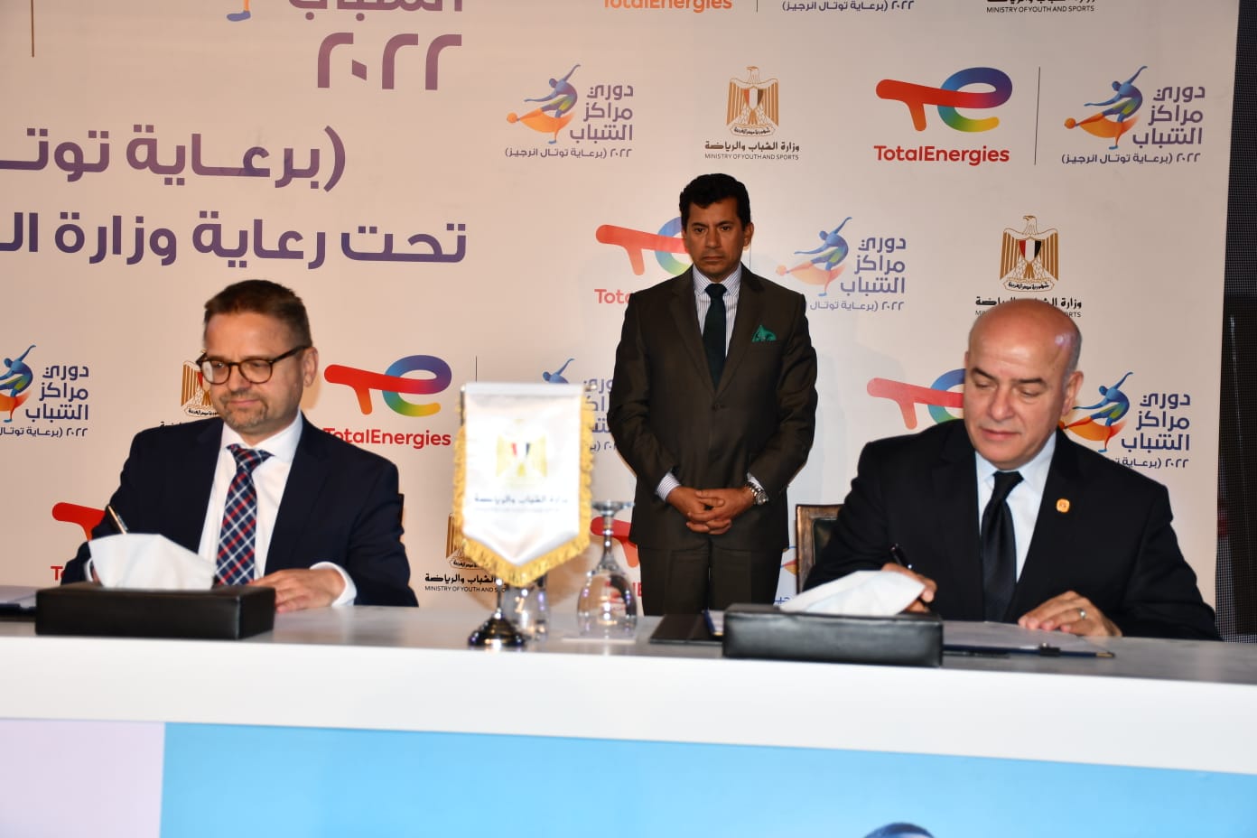 شهد الدكتور أشرف صبحي وزير الشباب والرياضة مراسم توقيع بروتوكول تعاون بين الوزراة وإحدى الشركات الشهيرة لرعاية دورى مراكز الشباب لكرة القدم الذى تنفذه الإدارة المركزية لمراكز الشباب والهيئات الشبابية، وذلك بحضور مدير عام توتال انريجز للتسويق ايجبيت توماس ستروش، وعدد من قيادات الوزارة.