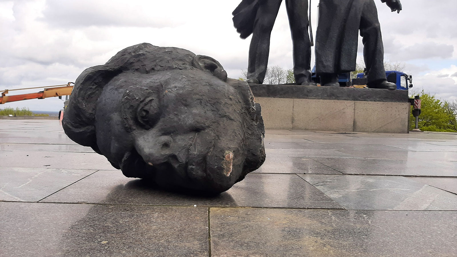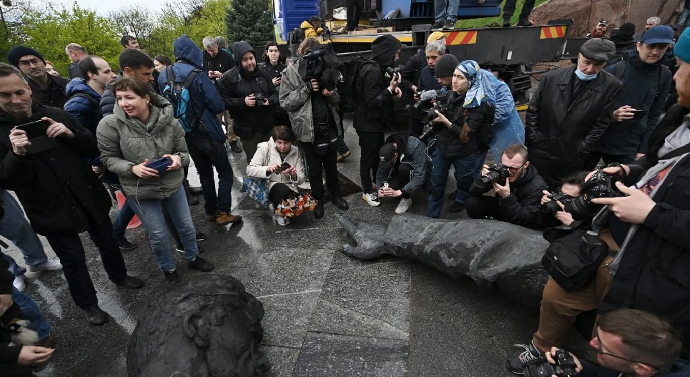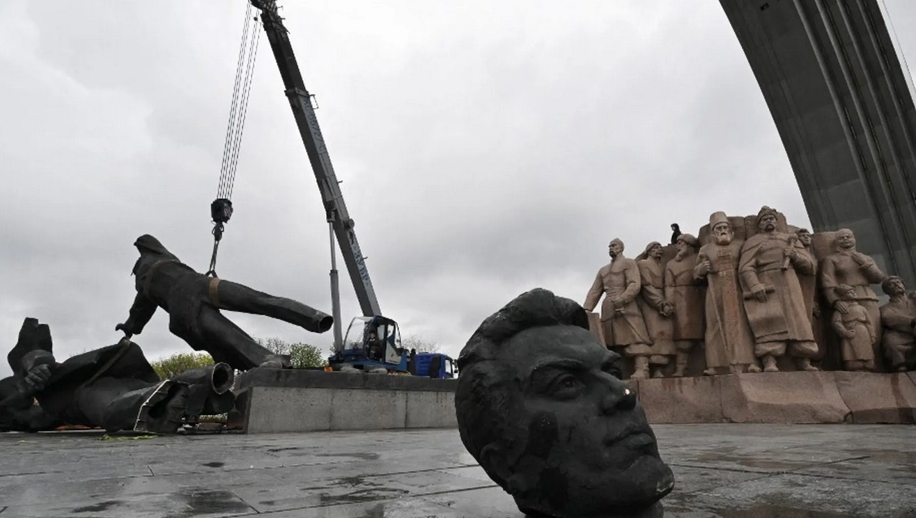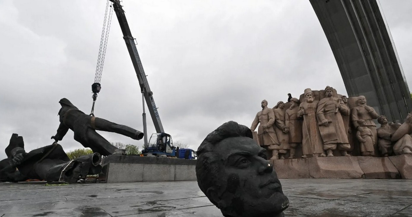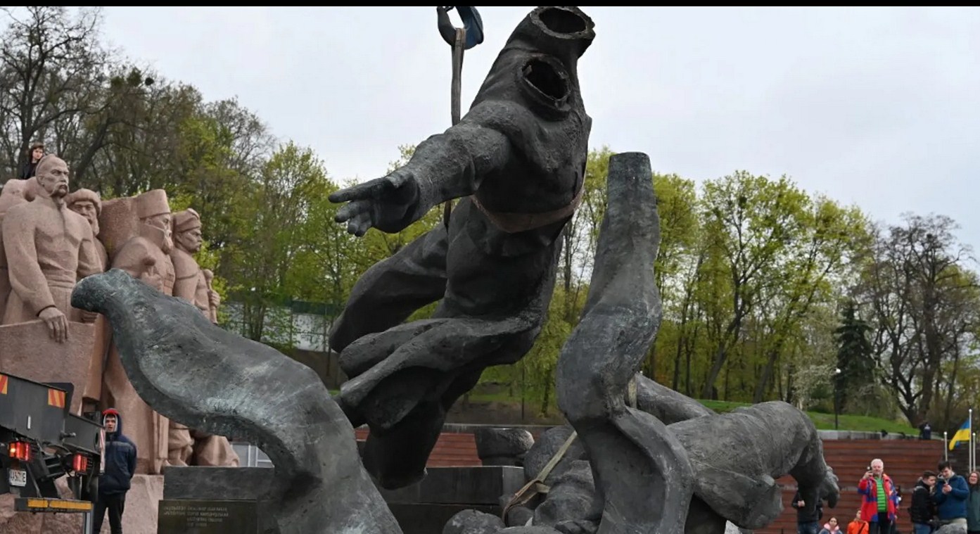 كييف تسقط تمثالًا من الحقبة السوفيتية يرمز للصداقة الروسية الأوكرانية | صور