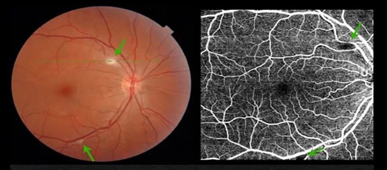 وأجرى فريق البحث هذه الفحوصات باستخدام كاميرا تصور الشبكية دون اتساع حدقة العين، وكشفت هذه الفحوصات عن بقع بيضاء على شبكية العين في 11٪ من الحالات.