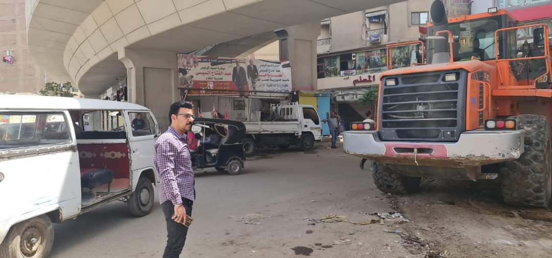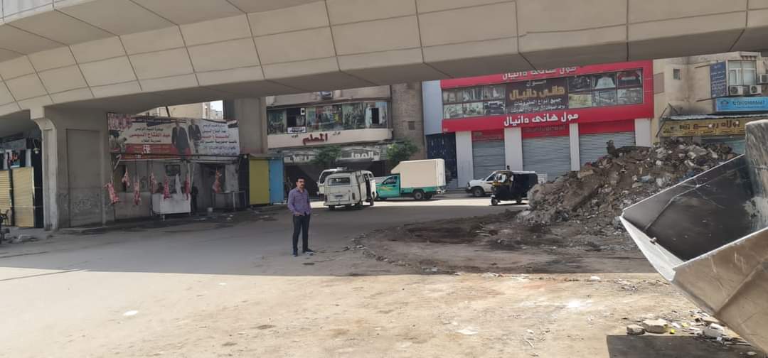 يواصل سمير عويضة رئيس حي العمرانية جهودها في متابعة رفع المخلفات المتراكمة أسفل كوبري ترسا بشارع خاتم المرسلين مع شارع عثمان محرم.