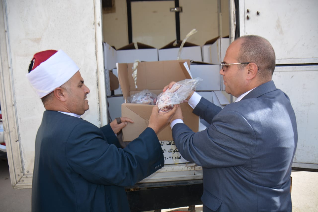 وثمن " مختار " جهود وزارة الأوقاف والتضامن الاجتماعي من خلال توزيع صكوك الطعام سواء كانت لحوم أو سلع غذائية متنوعه علي الأسر الأولي بالرعاية علي مستوي الجمهورية.
