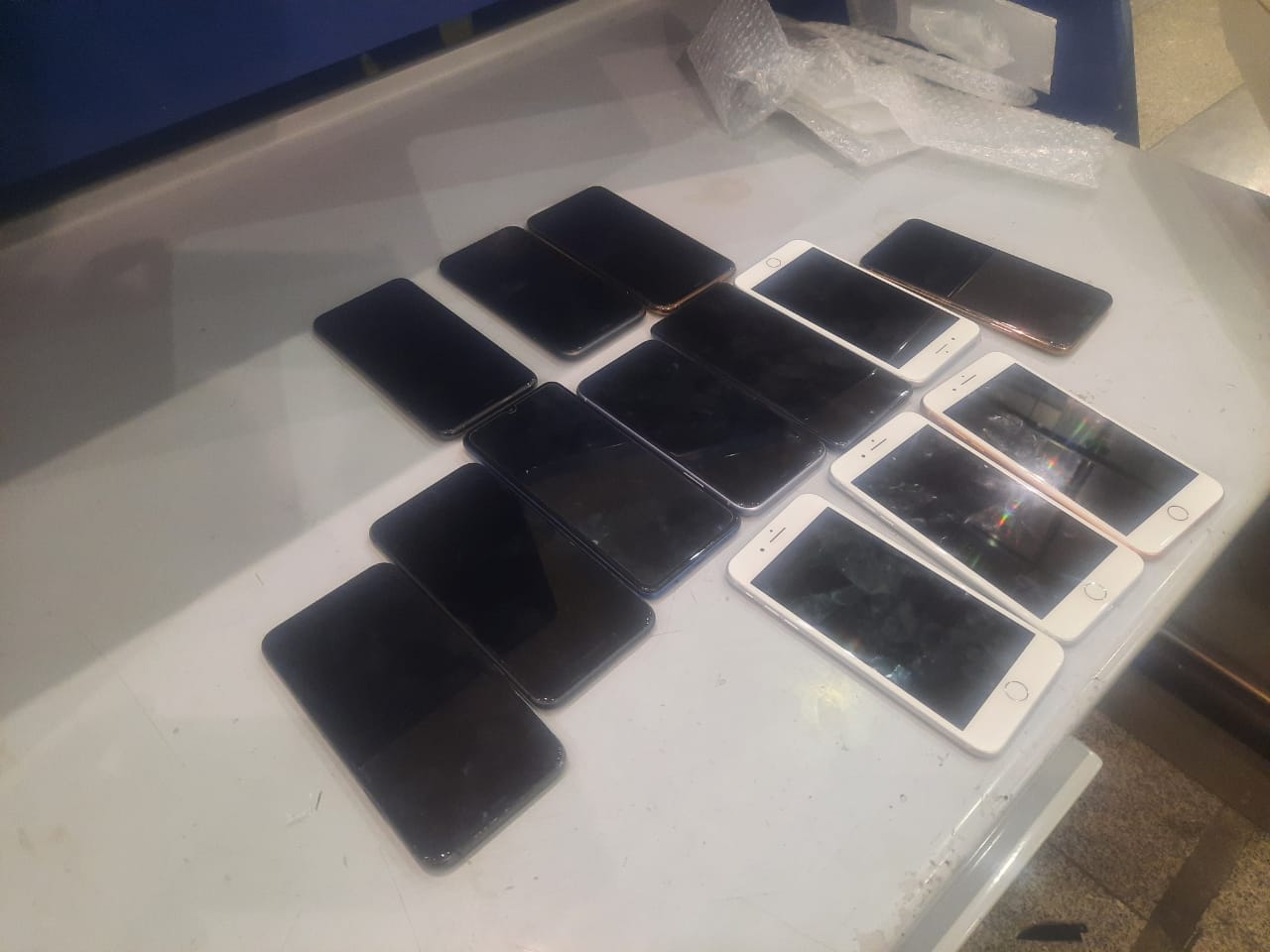 وبالعرض علي وليد عيسي مدير إدارة الجمرك بالانابة قرر تشكيل لجنة من كل من علي محمد قنبر ومحمد الكوانيني مأموري الحركة وجهاد جلال أمن جمركي ومحمود يعقوب رئيس قسم مكافحة التهريب بحضور إسلام قبارى مدير إدارة الفحص بالأشعة طارق عبد المنعم مدير إدارة الأمن الجمركي طاهر بخاطره مدير إدارة مكافحة التهرب الجمركى لتفتيش أمتعة الراكب فتبين وجود ١٣ جهاز ايفون مخبأة بين طيات الملابس داخل أمتعة الراكب.