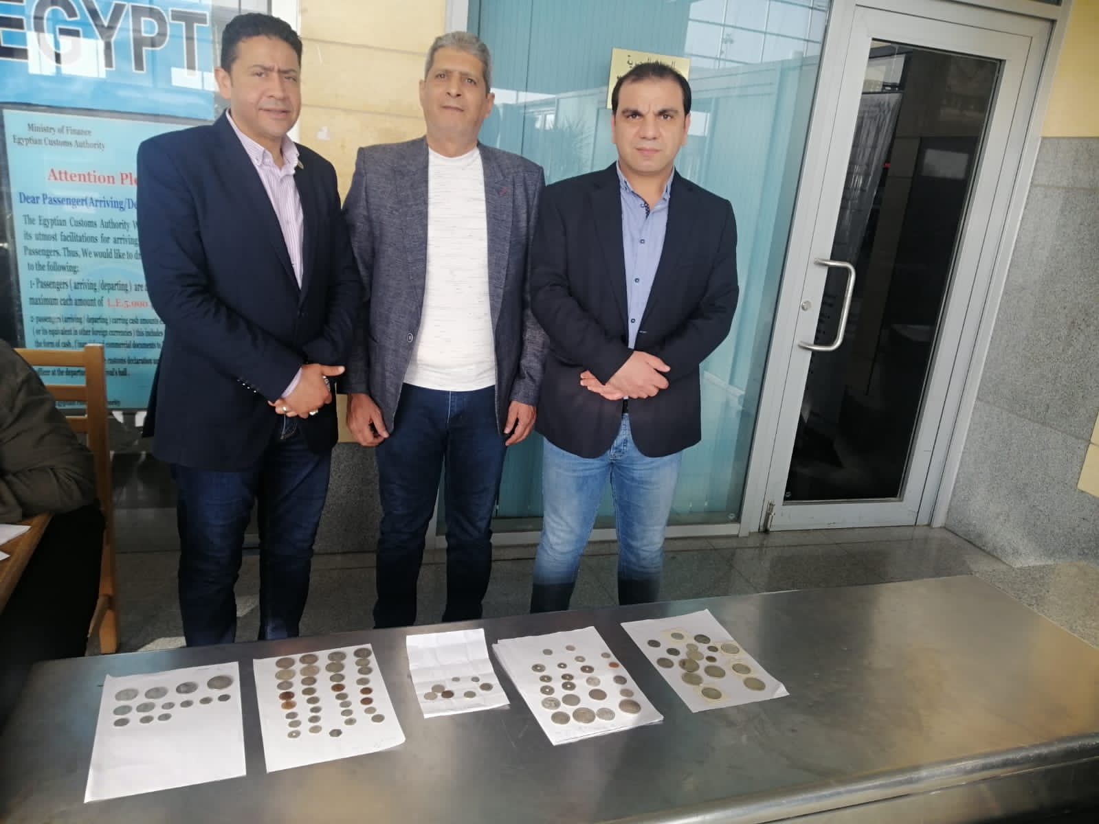 وقامت نفس اللجنة بتفتيش أمتعة الراكب فتبين وجود ٩١ عملة معدنية أثرية ترجع لعصر السلطان العثمانى والسلطان حسين كامل والملك فؤاد والملك فاروق الاول، واشترك فى الضبط والتقييم والتحريز وليد الشيخ مدير إدارة التعريفة تحت إشراف ايمن فوزي المشرف على التعريفة.