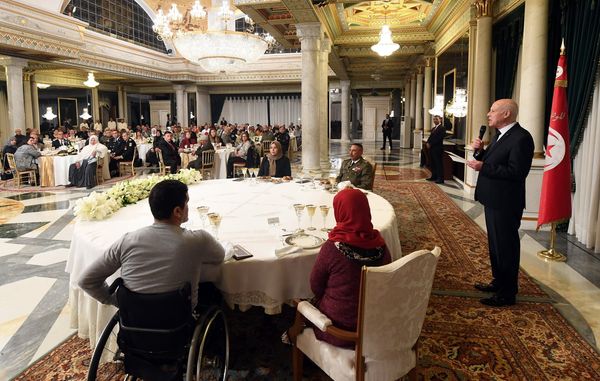 وقالت رئاسة الجمهورية التونسية في بيان: "أشرف رئيس الجمهورية قيس سعيد، مساء الأربعاء 27 أبريل 2022 بقصر قرطاج، على مأدبة إفطار بحضور عائلات شهداء وجرحى عمليات إرهابية من القوات المسلحة العسكرية والأمنية وعدد من عائلات شهداء الثورة وجرحاها".