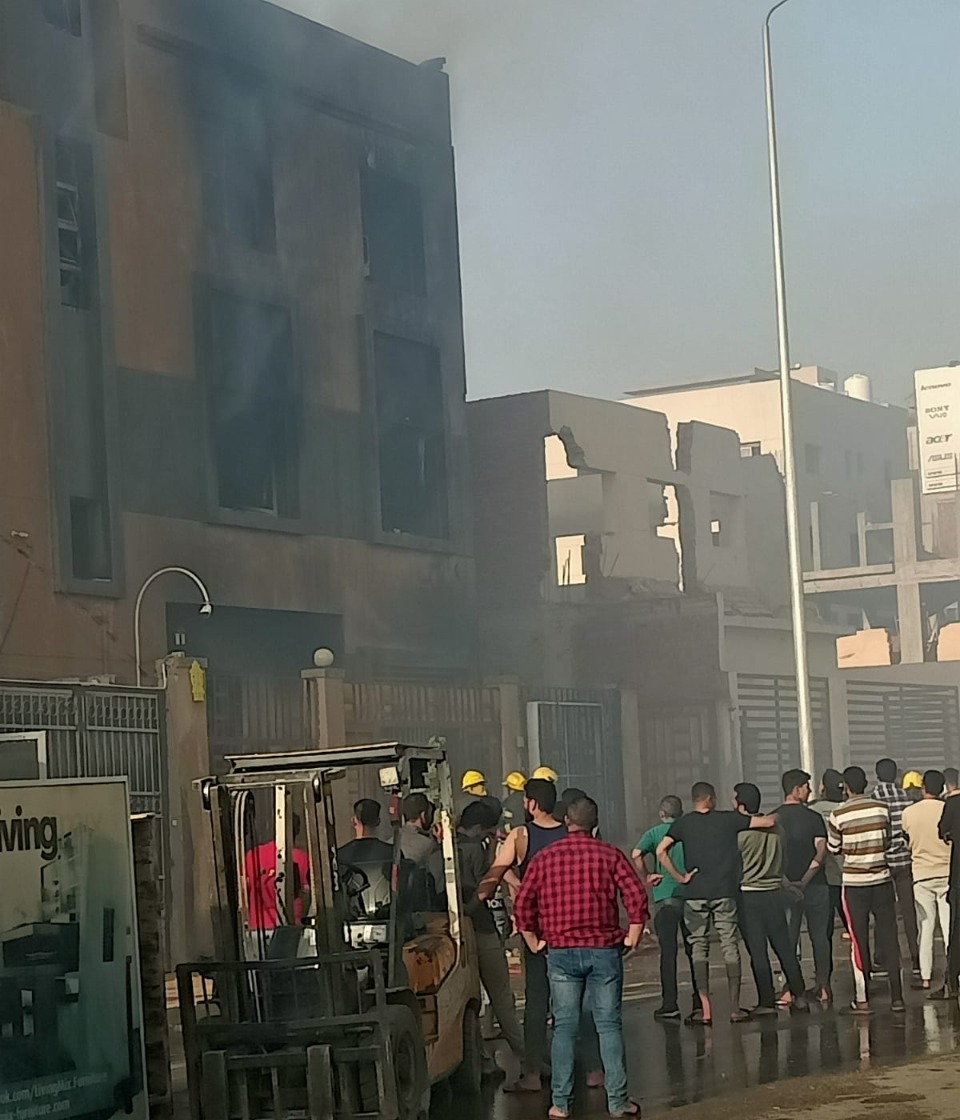 الصورة الأولى لحريق مصنع انتريهات بالتجمع الخامس