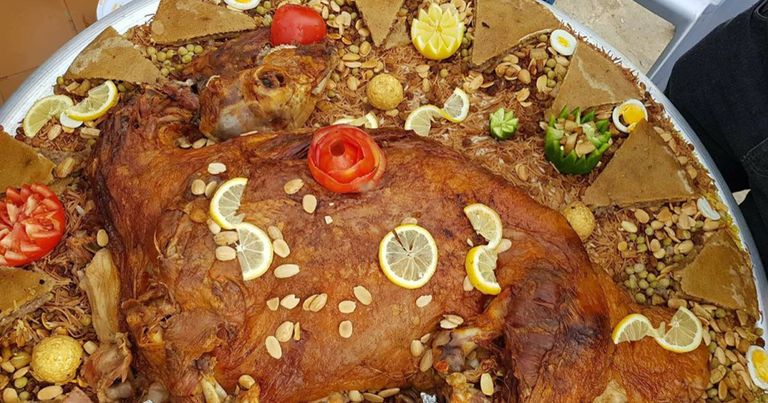 وقبل تناول الطعام يصطف أطفال العائلة لتلقي ريالات سعودية من كبار أفراد العائلة "عيدية".