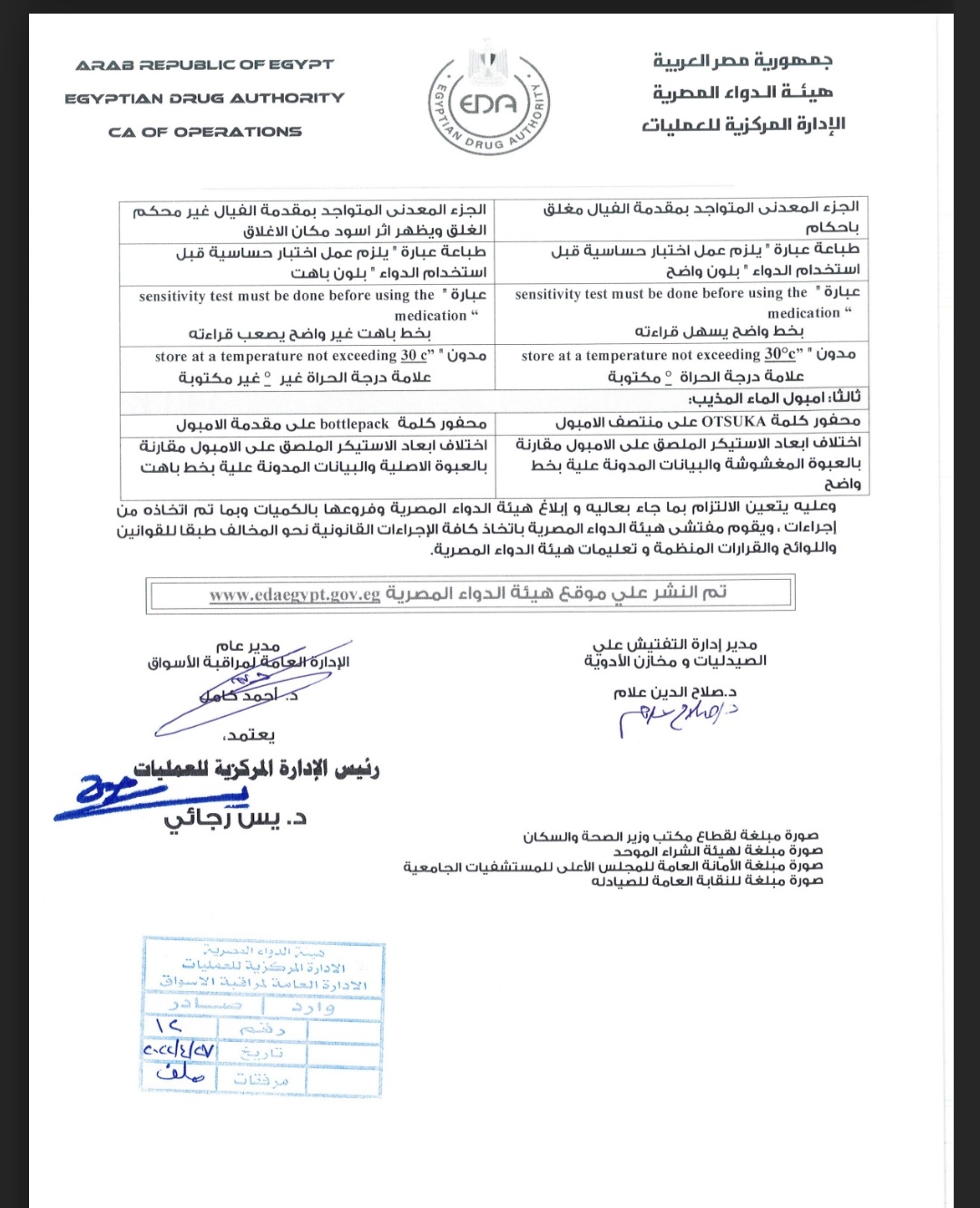وأكدت هيئة الدواء المصرية وجود عبوات مغشوشة تحمل تشغيلات 212588-212160-212584-211801-212126.