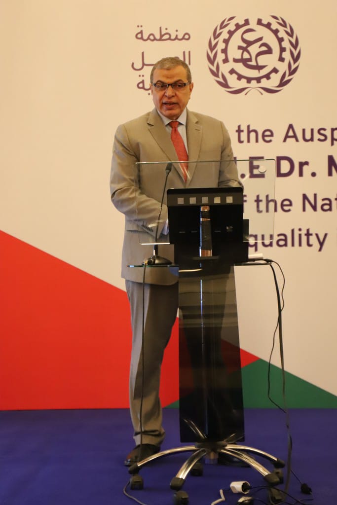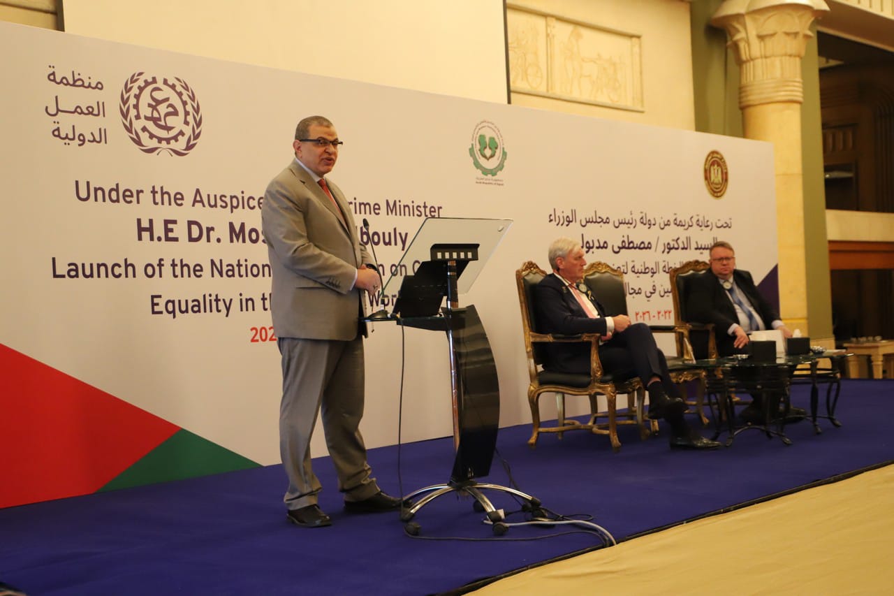وفى ختام كلمته قدم الوزير الشكر والتقدير لمنظمة العمل الدولية ومكتب المنظمة بالقاهرة علي دعمها ومساندتها الدائمة لأنشطة الوزارة المختلفة، والذى ظهر جليًا فى التعاون في إعداد الخطة بمشاركة لجنة من كافة الجهات المعنية بالمساواة بداية من السادة أعضاء وعضوات اللجنة الاستشارية ممثلي كافة الوزارات والجهات الوطنية الذين عملوا جميعا بجد على مدار ستة أشهر تقريبًا، من خلال ورش عمل مكثفة للانتهاء من صياغة خطة العمل بما يضمن أن تعكس تطلعات القيادة السياسية وجهود وأولويات كافة الجهات المعنية والحكومة المصرية لتمكين المرأة المصرية باعتبارها شريكة أساسية في النهوض بالاقتصاد القومي.