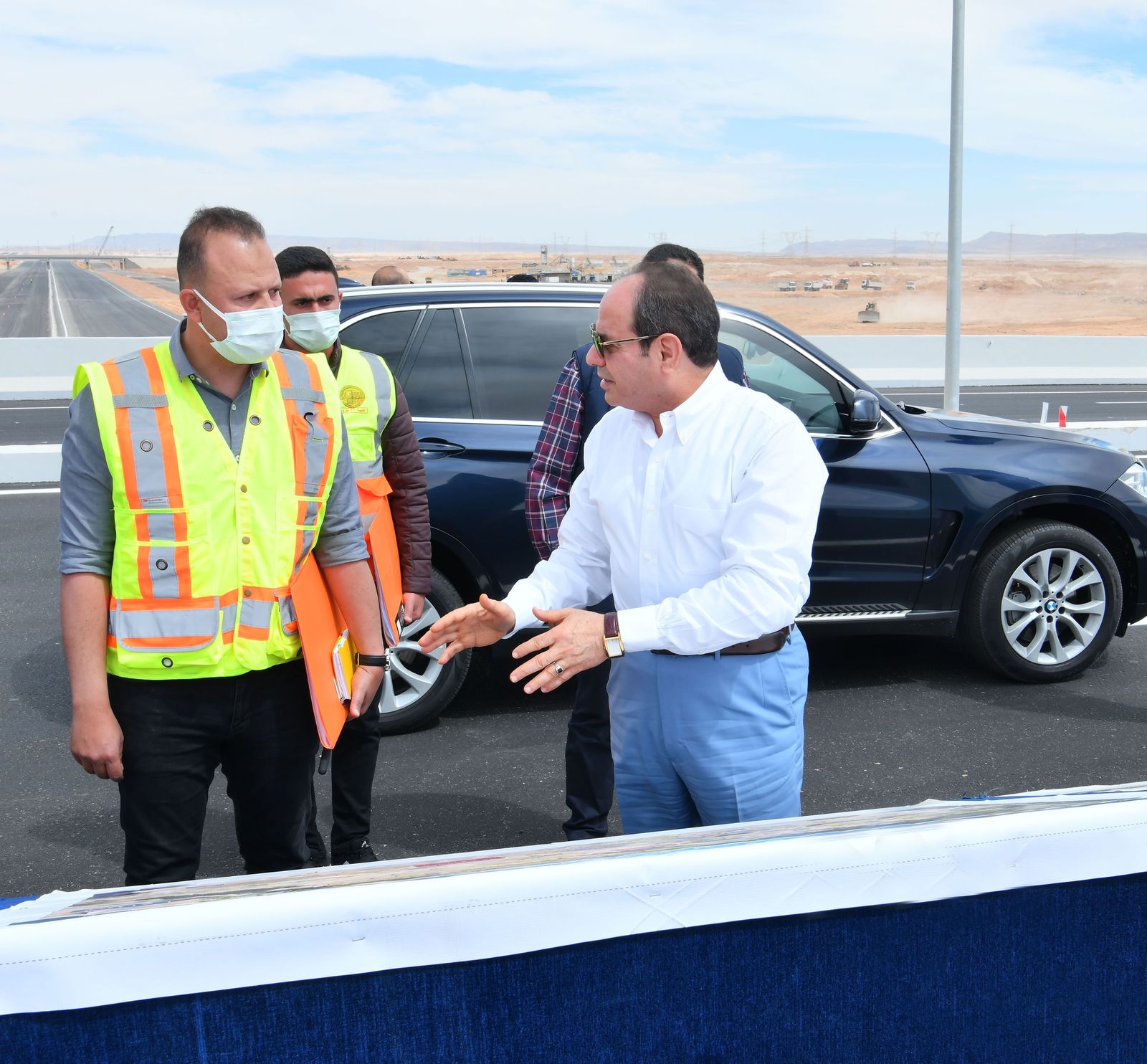 كما تم استعراض جهود رفع كفاءة الطرق بمحافظة جنوب سيناء، خاصةً من نويبع إلى طابا، فضلًا عن الموقف التنفيذي لتطوير شبكة طرق الصعيد، لاسيما ما يتعلق بمحور المراغة، حيث وجه الرئيس بتعزيز سير العمل في تلك المحاور الجديدة الهامة على نهر النيل بهدف تسهيل الحركة وخدمة المشروعات التنموية والمجتمعات العمرانية الجديدة.