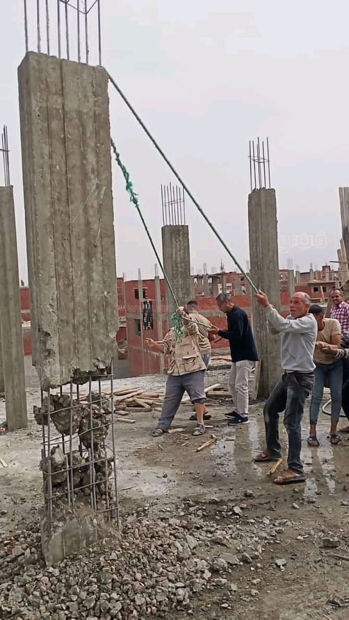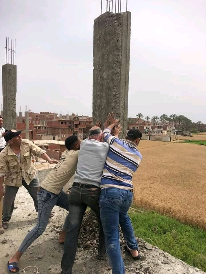 وذلك بناحيه قرية الشيخ جبيل التابعة للوحده المحلية بالاسدية ونجح الموظفون في هدم الاعمدة الخرسانية المقامة حديثًا عن طريق مطرقة وحبال وبايديهم وازاله البناء المخالف.