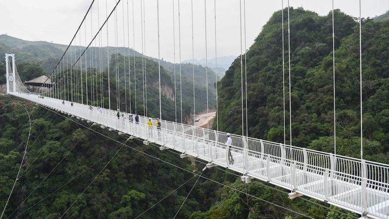 افتتحت فيتنام، اليوم الجمعة، جسر مشاة زجاجيًا طويلًا، على ارتفاع 150 مترًا فوق إحدى غاباتها، ويشعر من يصعد إليه كأنه يسير في الهواء.