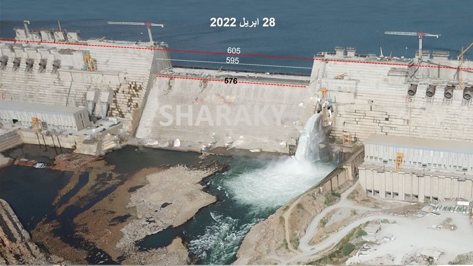 وقال "شراقي" عبر صفحته الشخصية بـ"فيس بوك": "تم رفع بعض الأجزاء الرئيسية على جانبي سد النهضة حتى مستوى 605 أمتار فوق سطح البحر خاصة المناطق المحيطة بالممر الأوسط، على أن تتم التسوية فيما بعد".