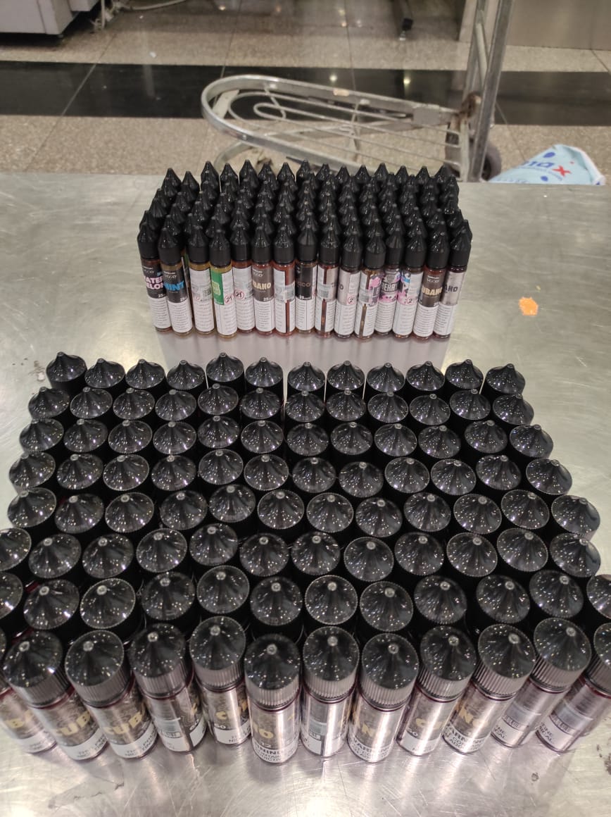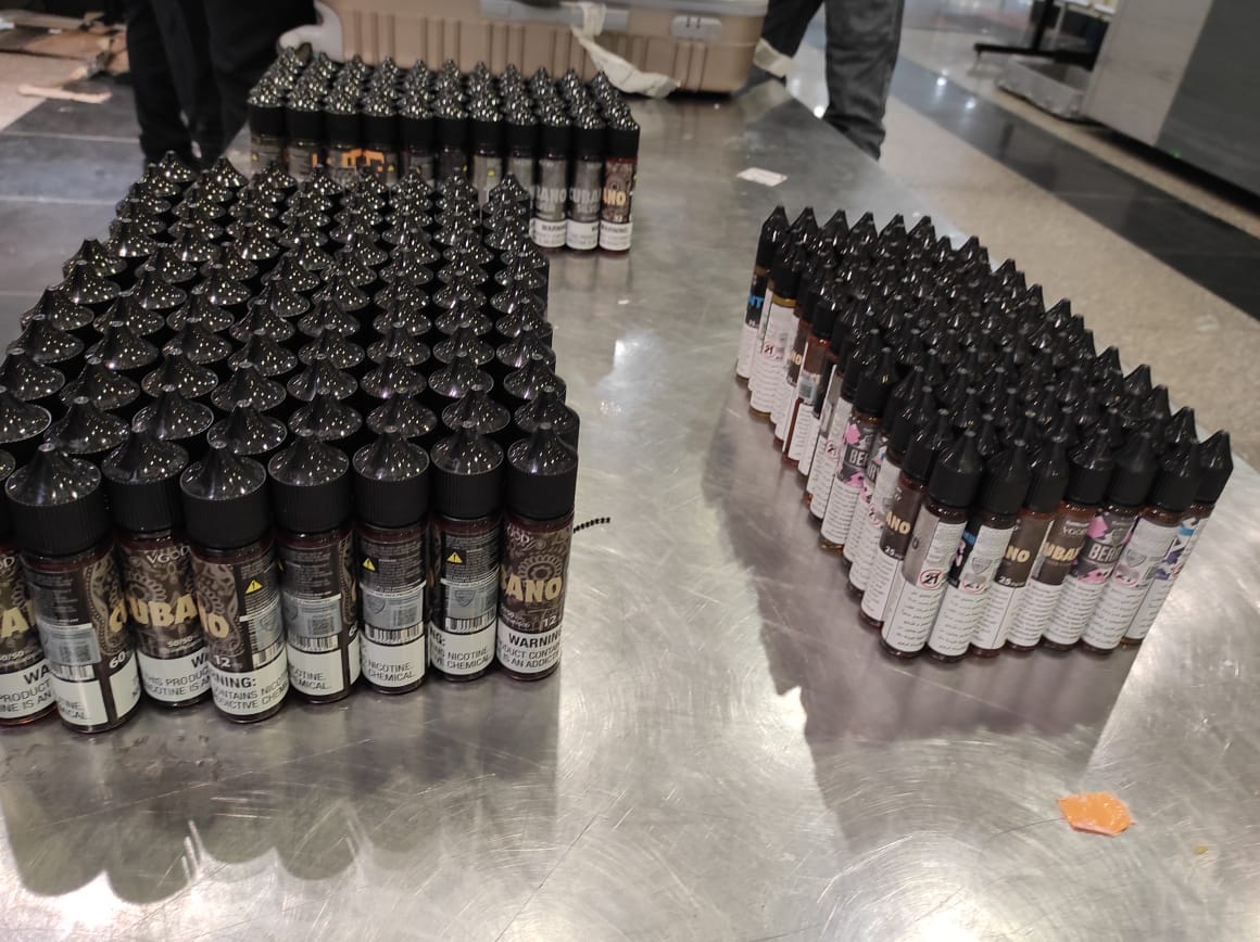 وأفاد مصدر جمركي بمطار القاهرة، أثناء إنهاء الإجراءات الجمركية علي ركاب رحلة طيران الخطوط الكويتيه استوقف مصطفى حسن عبد العزيز مأمور الجمرك المعين علي لجنة الخط الأخضر أحد الركاب أثناء محاولته الخروج من بوابة اللجنة الجمركية والذي أنكر حوزته لما يجب الإفصاح عنه أو ما يستحق عنه ضرائب ورسوم جمركية وبتفتيش حقائبه على جهاز الفحص بالأشعة بواسطة كل من أحمد صلاح رزق مأمور الجمرك وفرج حمدي رئيس القسم تلاحظ لهما وجود عبوات متكررة بكثرة، قام تامر عادل أحمد رئيس القسم المشرف على صالة الوصول بمبني الركاب رقم ٢ بتكليف السيد أحمد موسي مأمور الجمرك بتفتيش حقائب الراكب يدويا مما أسفر عن ضبط ٢٦٥ عبوة وزجاجة بهم زيت الشيش الإلكترونية.