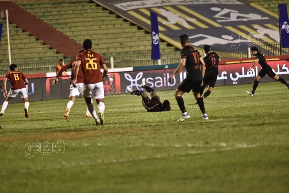وفي الدقيقة 41، أهدر محمود وحيد فرصة للأهلي بعد اختراق داخل منطقة الجزاء إلا أنه سددها فوق المرمى، قبل أن يتعرض محمد عبد المنعم للإصابة ويغادر المباراة ويحل بدلًا منه ياسر إبراهيم لينتهي الشوط الأول بالتعادل السلبي.