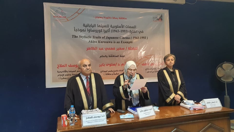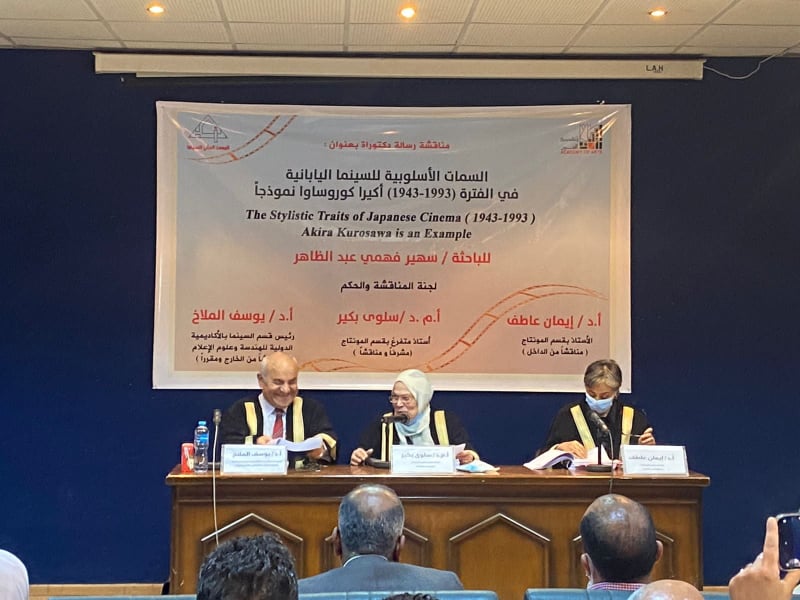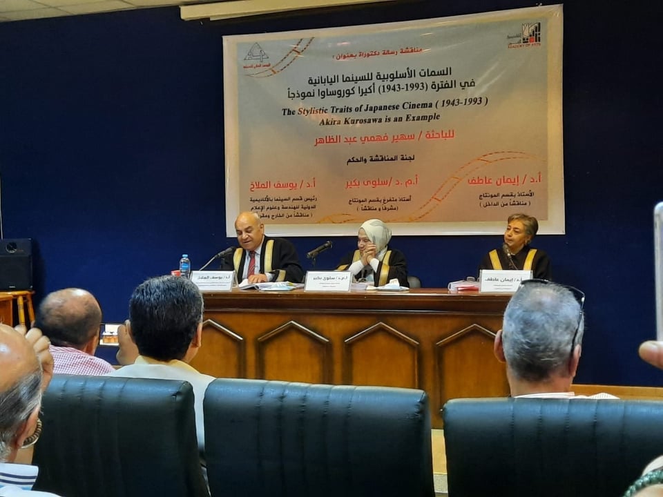 نوقشت رسالة دكتوراة تحت عنوان " السمات الاسلوبية للسينما اليابانية في الفترة (1943-1993) أكيرا كوروساوا نموذجًا لـ الباحثة سهير فهمي، بمقر المعهد العالي للسينما – أكاديمية الفنون.