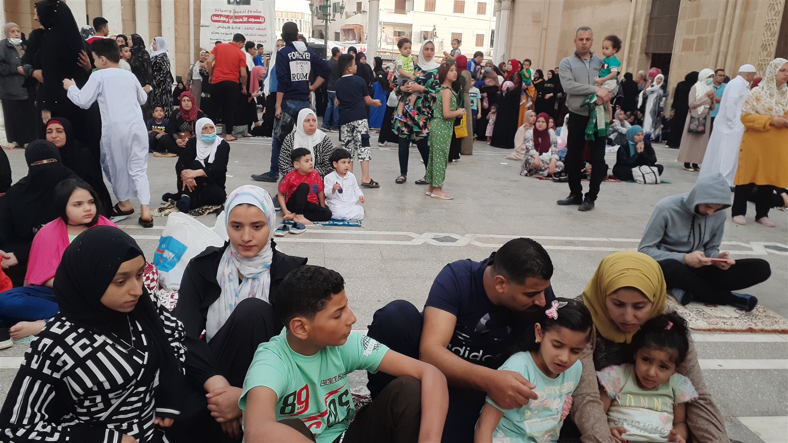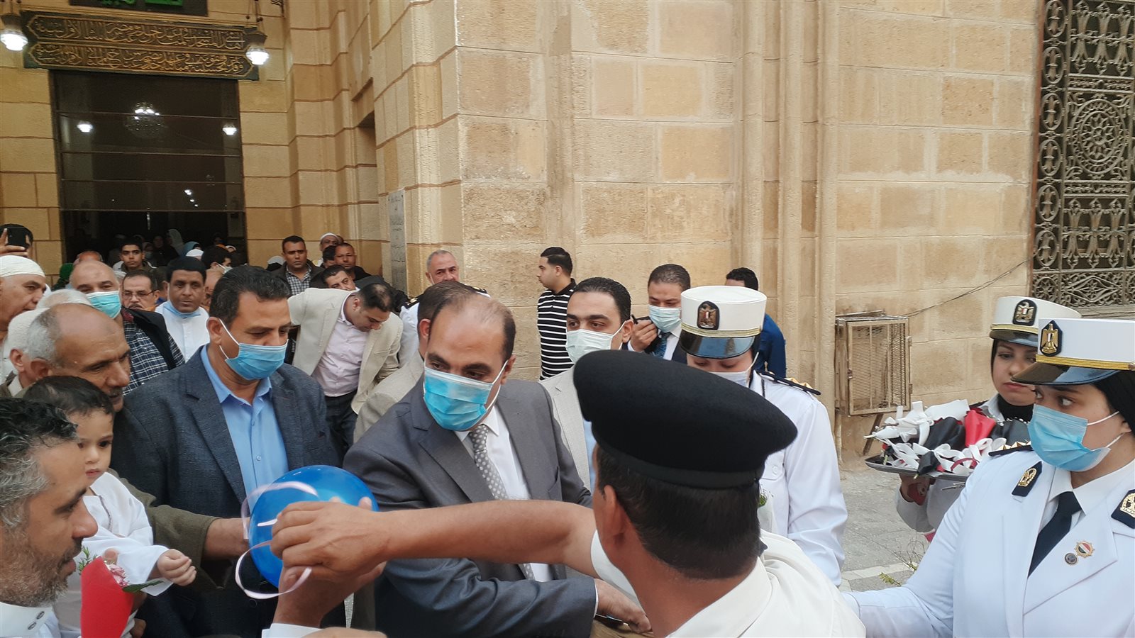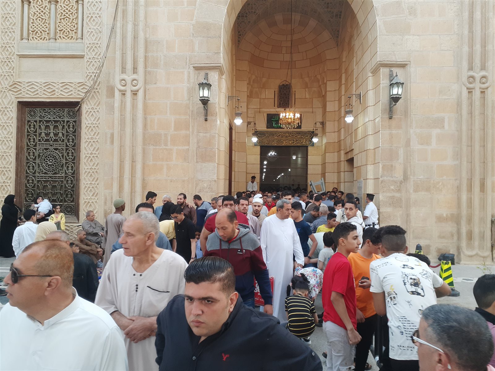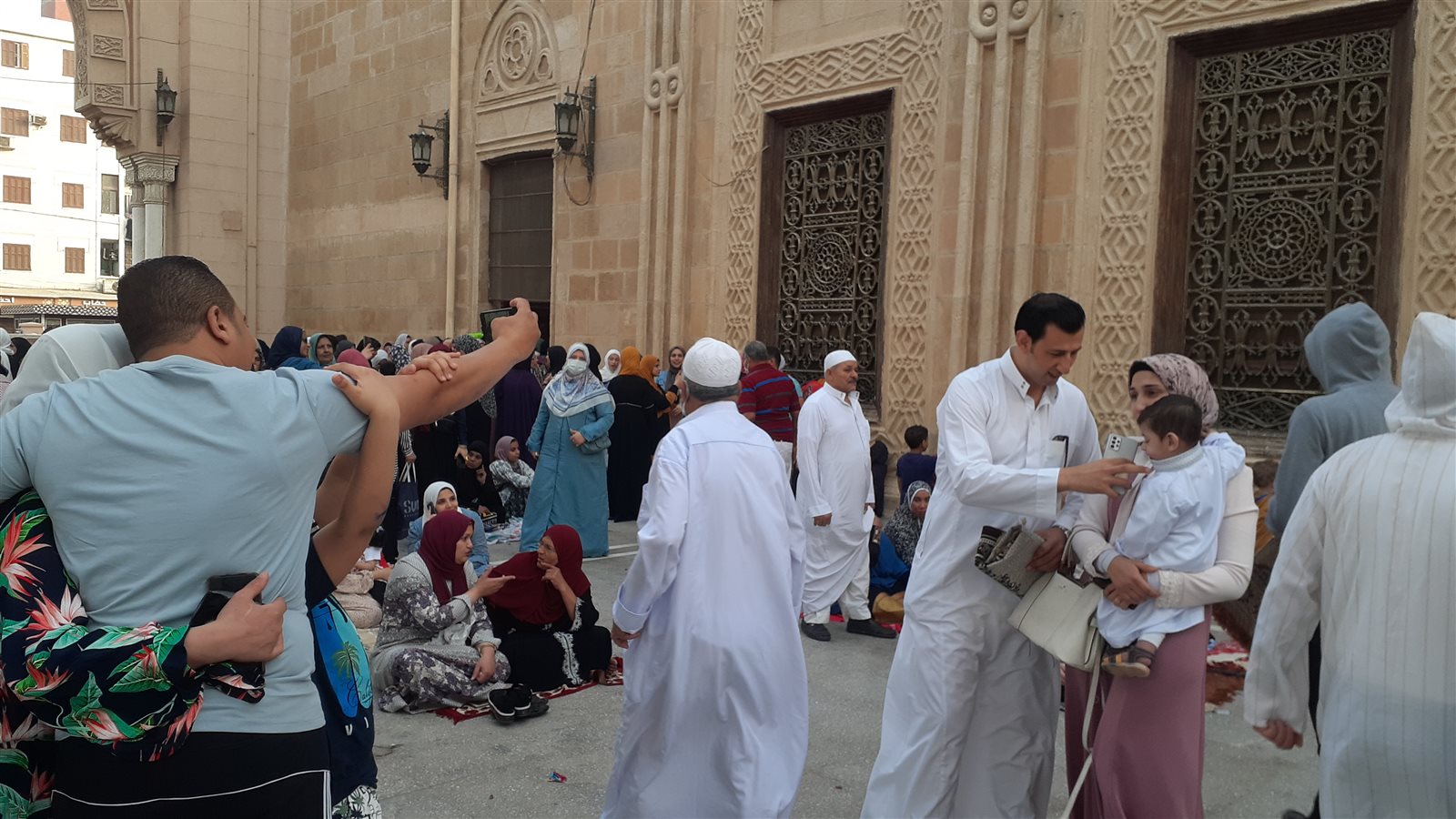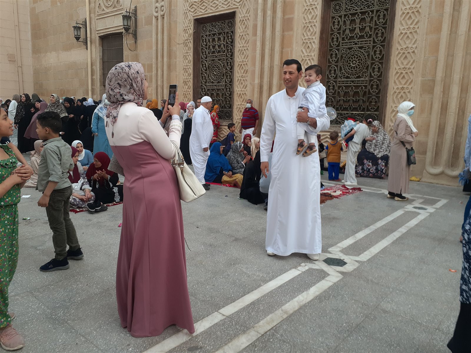 وشهد المسجد زحاما وإقبالا من جانب المصلين لتأدية صلاة العيد في ظل التمسك من جانب عدد كبير من المصلين بتطبيق الإجراءات الوقائية لمواجهة انتشار فيروس كورونا المستجد والتقاط الصور التذكارية أمام ساحة المسجد.