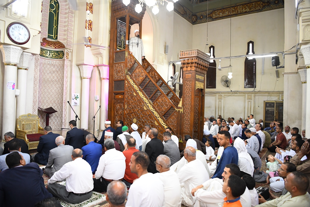 وعقب إنتهاء الصلاة استمع المحافظ إلى خطبة العيد التى ألقاها فضيلة الشيخ محمد عبدالرازق أمام وخطيب مسجد سيدي عبدالرحيم القنائى بعنوان " يوم الجائزة الكبرى " وقال فيها أن عيد الفطر المبارك هو يوم الجائزة الكبرى، حيث تتجلى فيه عوائد الكرم الرباني، فيفرح الصائمون بصیامهم وقيامهم، واجتهادهم في العبادة، وإنفاقهم في وجوه الخير، لافتا إلى أنه في الأعياد تتجسد مظاهر الفرح، مؤكدا أن شكر الله عز وجل على نعمه من أهم مظاهر الاحتفال بالعيد، مشيرا إلى أهمية الحرص على صلة الأرحام، وتوطيد العلاقات الاجتماعية فى هذا اليوم.