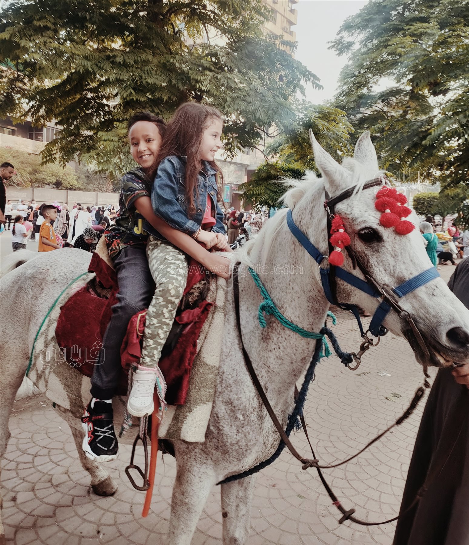 شهدت ساحة مسجد مصطفى محمود اليوم الاثنين في أول أيام عيد الفطر المبارك، العديد من المشاهد الاحتفالية للمواطنين.