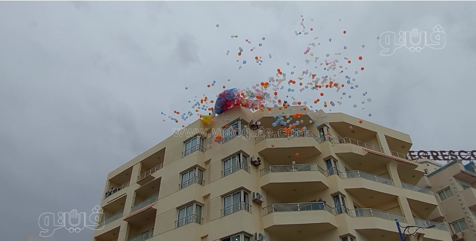 وحرص الأطفال على مشاهدة منظر البالونات التي تتطاير في الهواء والتقاط الصور أثناء نزولها وتسابق المحتفلون بالعيد على اللحاق بالبالونات والشيكولاته في ظل أجواء من السعادة والفرحة.