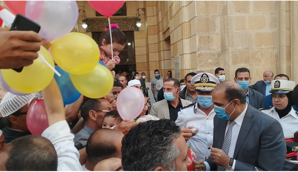 وقام الشباب بمبادرة "منا لهنا" لإدخال البهجة على أهالي محافظة مطروح، والأطفال والمواطنين عقب الانتهاء من صلاة عيد الفطر المبارك بمسجد العوام بمطروح.