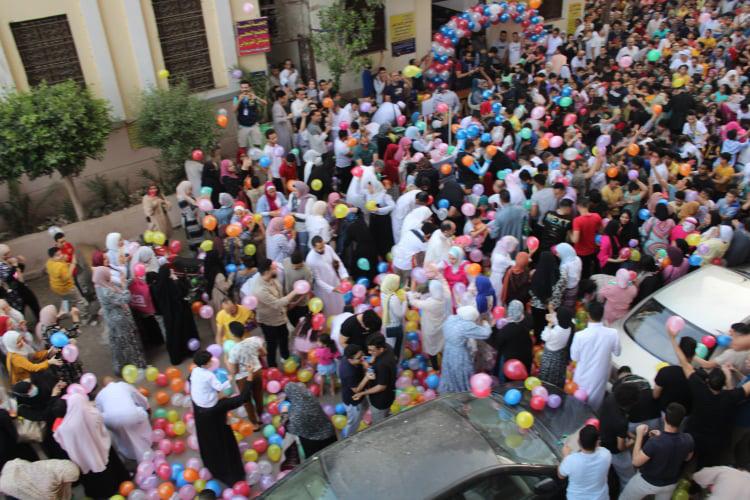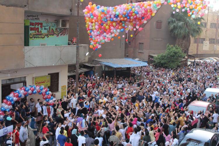 شهدت شوارع مدينة شبرا الخيمة حالة من التكدس احتفالا بالعيد ووزع بعض المواطنين البالونات للاحتفال.