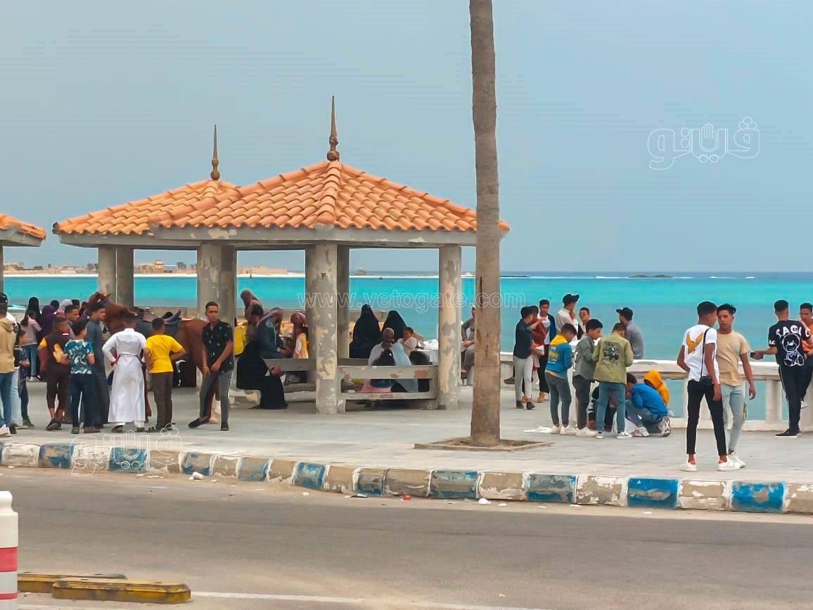 شهد كورنيش مدينة مرسى مطروح، احتفال أهالي وشباب المحافظة بعيد الفطر المبارك، بالفسحة والاستجمام بالبحر وكذلك ألعاب الأطفال المختلفة.