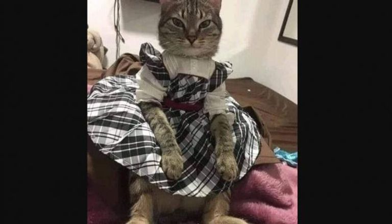 ومن طرائف هذه الصور أن القطط الإناث ارتدت ألبسة بناتي جميلة، مثل التنورة والجوارب وبالألوان المفضلة عادة عند الإناث، وكذا الذكور كان لهم نصيب من اللباس "الرجالي" بسراويل.