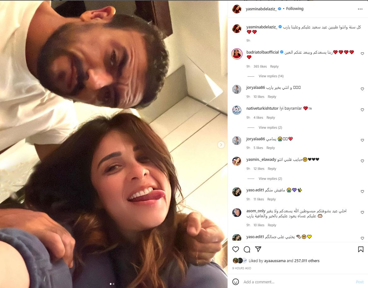 وتمنت الفنانة الكبيرة ياسمين عبد العزيز لجمهورها عيد سعيد، قائلة: "كل سنة وانتوا طيبين عيد سعيد عليكم وعلينا يا رب"، وذلك عبر حسابها الرسمي على موقع الصور والفيديوهات “إنستجرام”، ونشرت صورتين بصحبة زوجها الفنان أحمد العوضي.