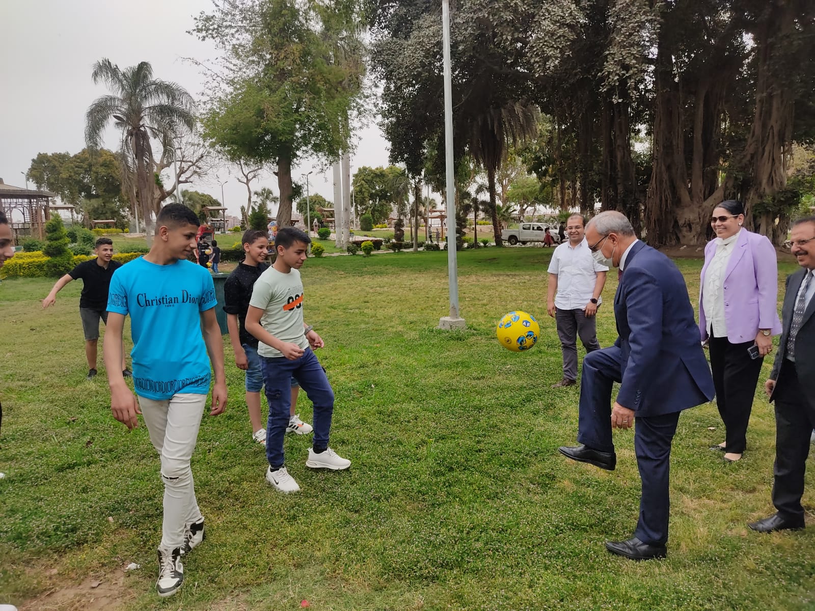 محافظ القليوبية يشارك الشباب لعب الكرة في احتفالات العيد | صور