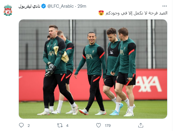 حساب ليفربول يدعم لاعبي الفريق: العيد فرحة لا تكمل إلا في وجودكم
