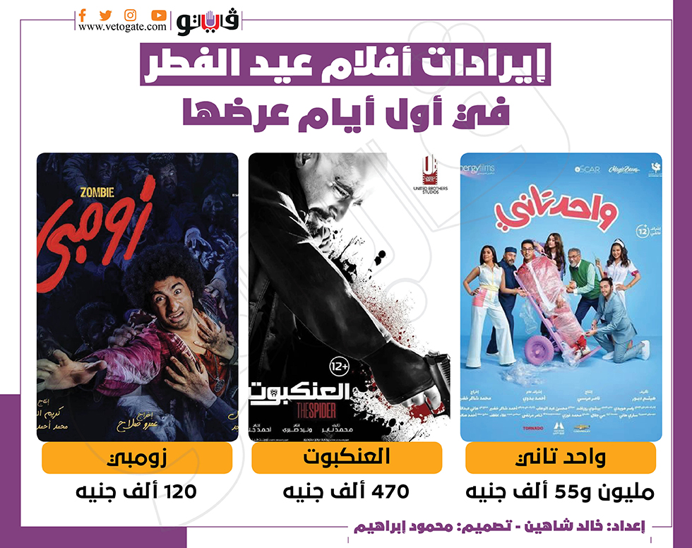 إيرادات أفلام عيد الفطر في أول أيام عرضها | إنفو جراف الإثنين 02/مايو/2022 - 08:48 م 5/2/2022 8:48:13 PM إيرادات أفلام عيد الفطر في أول أيام عرضها خالد شاهين شارك طباعة 18 حجم الخط شارك طباعة فيلم واحد تاني فيلم العنكبوت فيلم زومبي أفلام عيد الفطر عيد الفطر المبارك