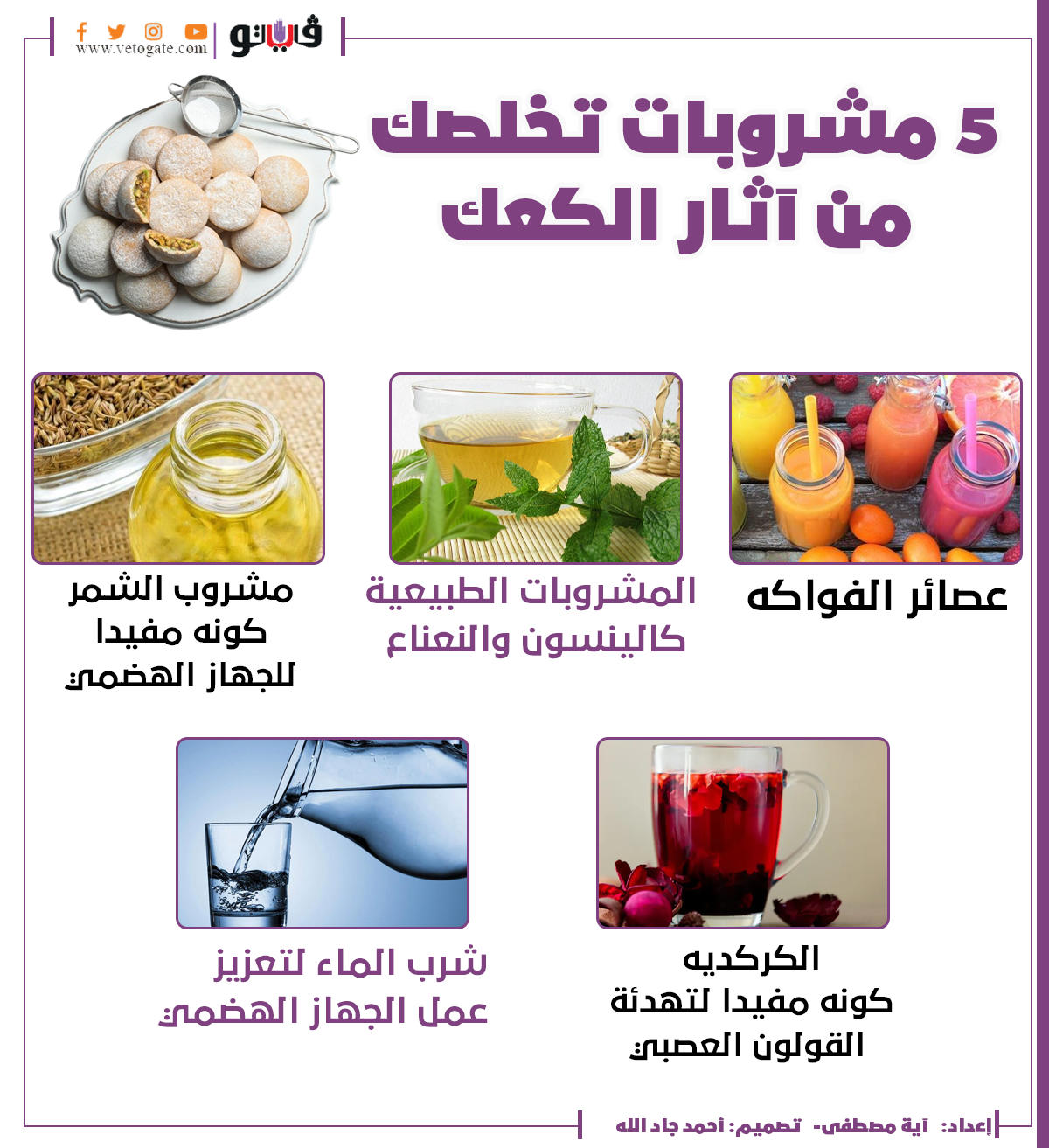 5 مشروبات تخلصك من آثار الكعك | انفوجراف الأربعاء 04/مايو/2022 - 12:41 م 5/4/2022 12:41:14 PM كعك العيد آية مصطفى شارك طباعة 18 حجم الخط شارك طباعة انفوجراف المشروبات الطبيعية عصائر الفواكه مشروب الشمر القولون العصبي الجهاز الهضمي