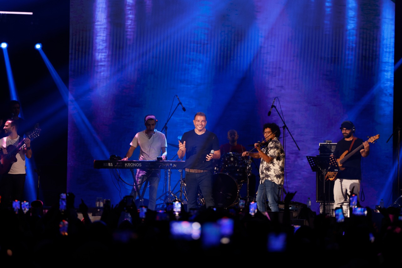 وصعد عمرو دياب إلى المسرح وسط تفاعل جمهوره الذي هتف وردد معه أغانيه الشهيرة التي قدمها على مدار ساعتين.