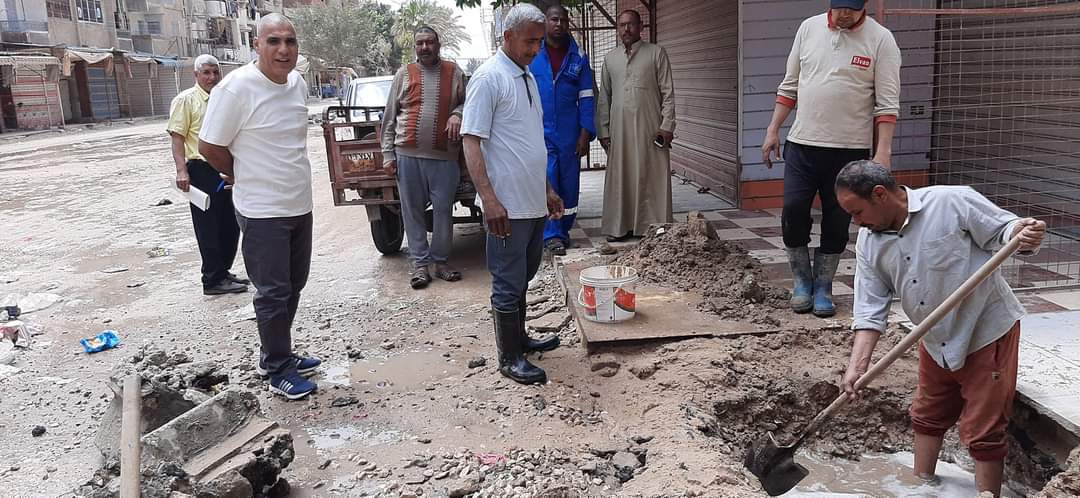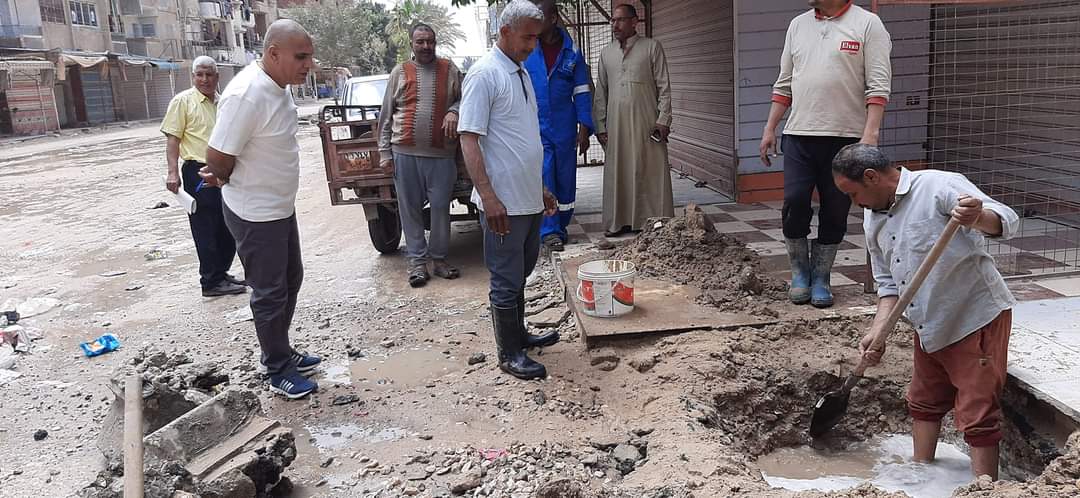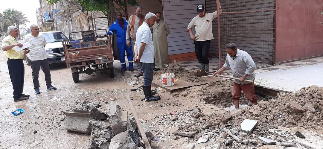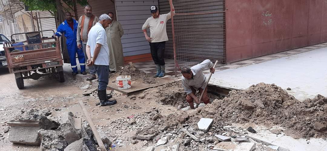 إصلاح كسر بخط المياه الرئيسي بالقنطرة غرب الإسماعيلية | صور