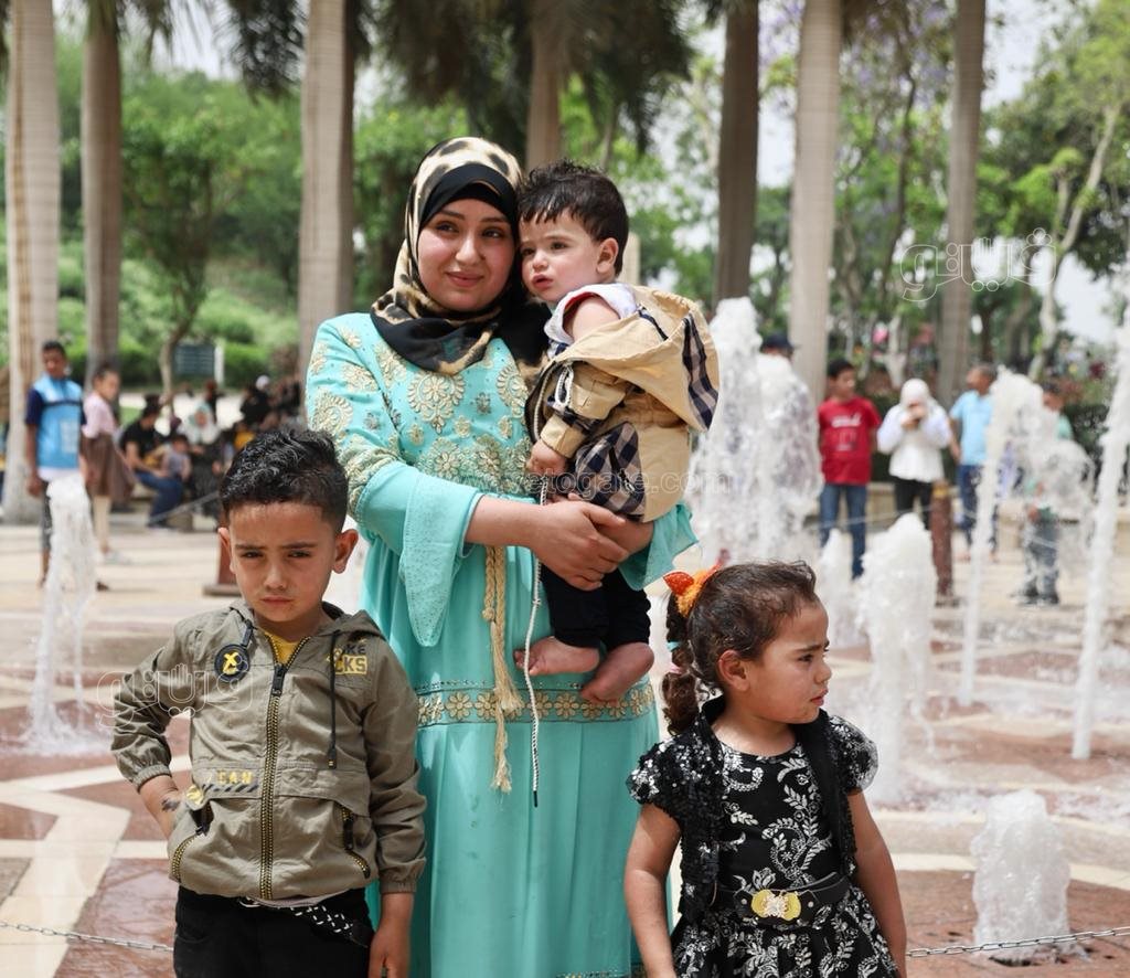 وارتسمت البسمة على وجوه الحضور ابتهاجًا بثالث أيام عيد الفطر المبارك وسط طقس معتدل ربيعي، حيث افترشت العائلات الحديقة.