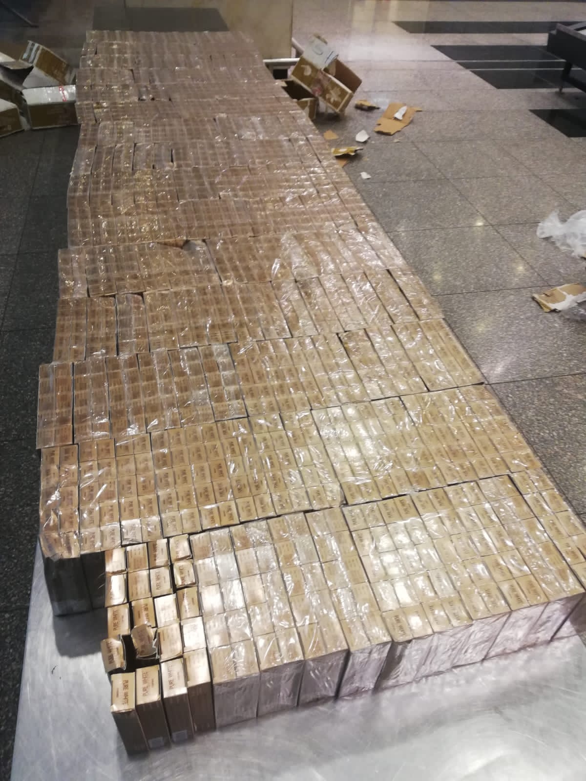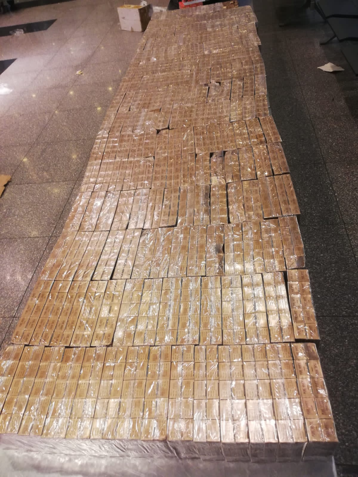 وأفاد مصدر جمركي بمطار القاهرة، أنه أثناء إجراء الإجراءات الجمركية علي ركاب رحلة الخطوط المغربية القادمة من الدار البيضاء استوقف وليد جمال حسن مأمور الجمرك المعين علي لجنة الخط الأخضر أحد الركاب أثناء محاولته الخروج من بوابة اللجنة الجمركية، والذي أنكر حيازته لما يجب الإفصاح عنه أو ما يستحق عنه ضرائب ورسوم جمركية، وبتفتيش حقائبه علي جهاز الفحص بالأشعة بواسطة كل من إبراهيم طه شاهين مأمور الجمرك وهاني مصطفي رئيس القسم واللذين تلاحظ لهما وجود عبوات متكررة ومتماثلة داخل حقيبتي الراكب.