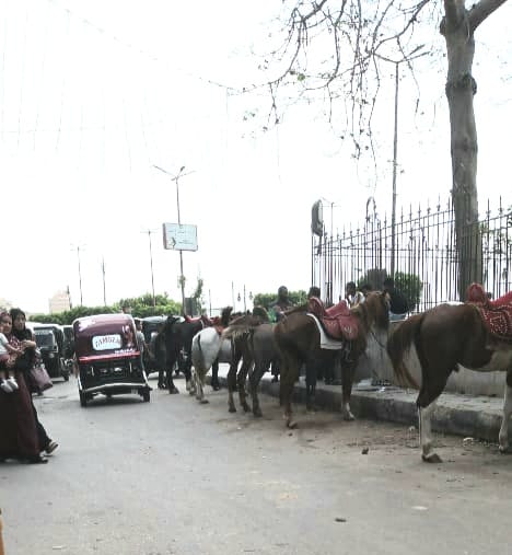 بعد أن قام أصحاب الخيول بتحويل سور مبنى ديوان مجلس مدينة كفرالزيات الحديدي الي حظيرة للخيول وتوثيقها بالحبال