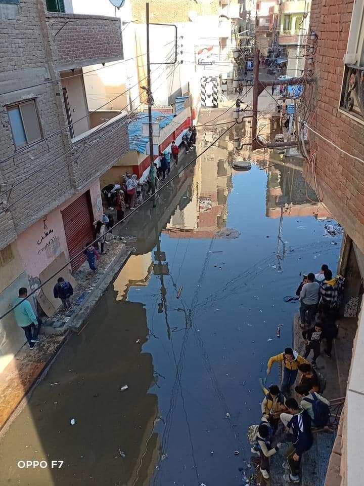 كلاكيت خامس مرة.. شوارع ميت حبيش تغرق في مياه الصرف الصحي
