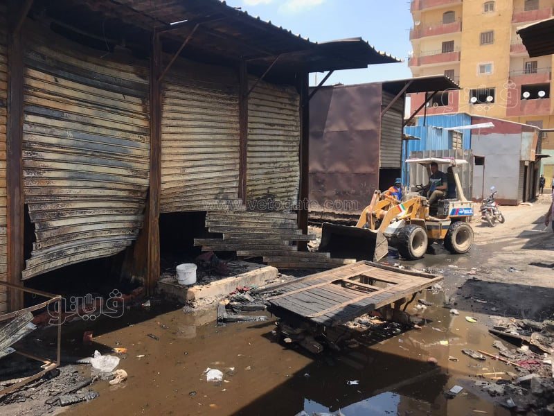 وكشفت المعاينة الأولية أن ماس كهربائي وراء نشوب الحريق داخل محل ملابس وامدت الى باقى المحلات المجاورة له، مما اسفر عن تفحم محتويات المحلات.