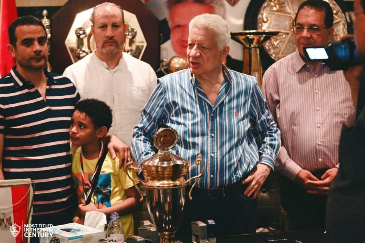 حرص المستشار مرتضى منصور علي تهنئة والتقاط بعض الصور التذكارية مع فريق المرتبط لكرة اليد بنادي الزمالك مواليد 2004 عقب الفوز علي نظيره سبورتنج بنتيجة 24-29 في المباراة الفاصلة التي جمعت الفريقين مساء الخميس على صالة نادي 6 أكتوبر ضمن منافسات الدور النهائي من البطولة.