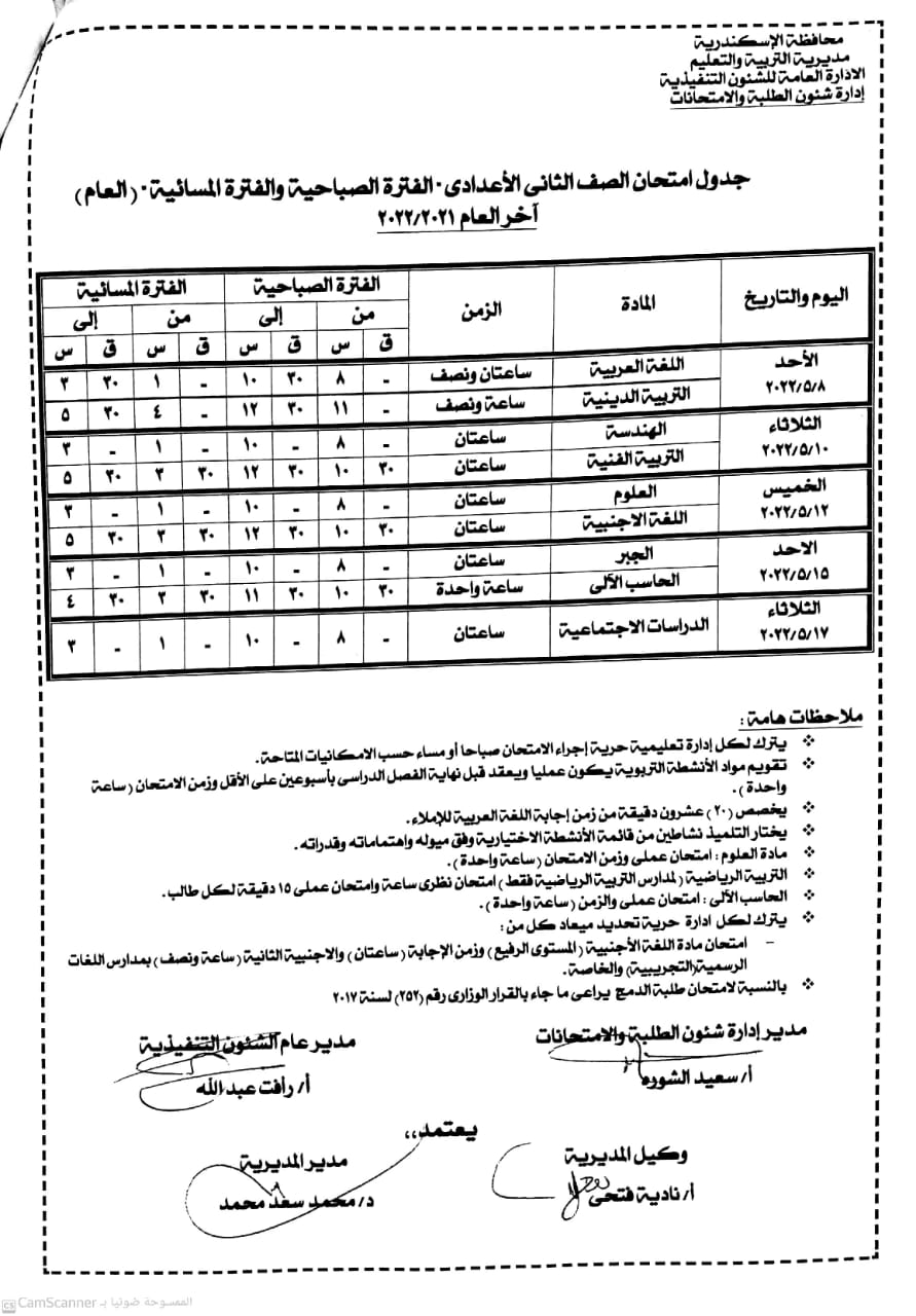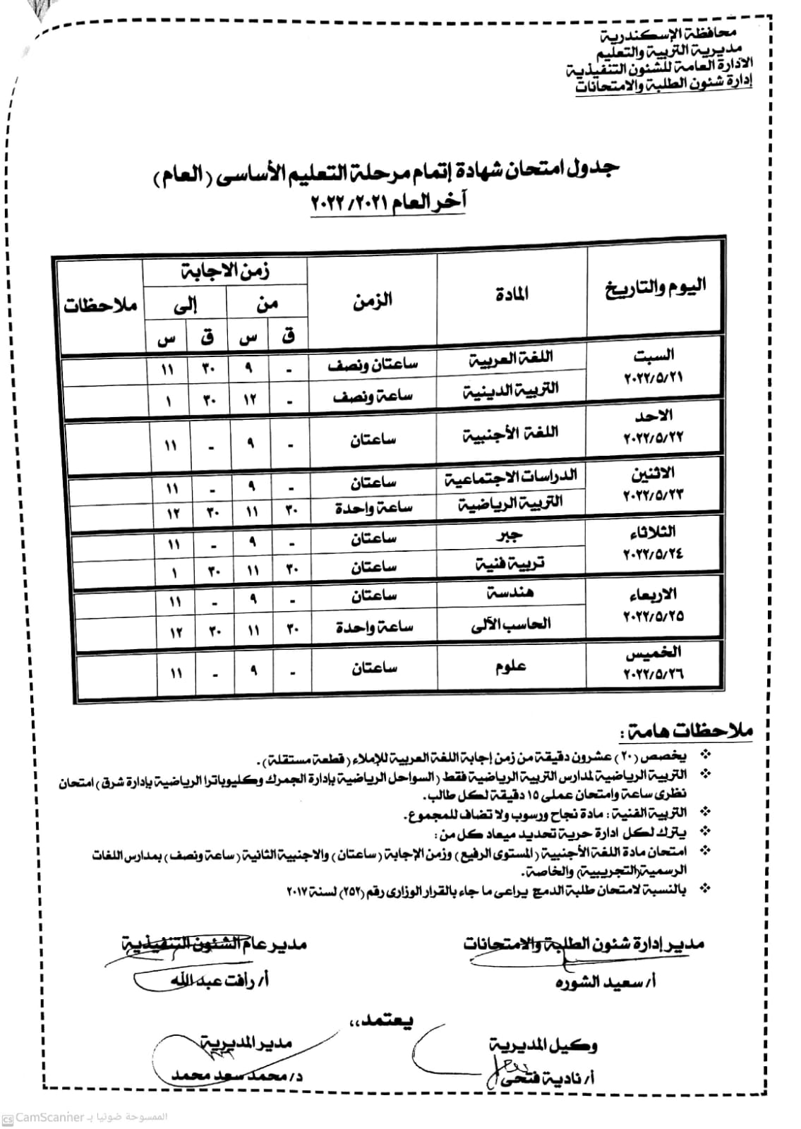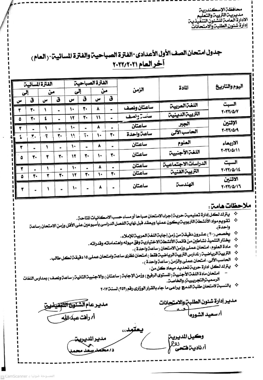 يُذكر أنّ امتحانات الشهادة الإعدادية ستبدأ في الفترة من 21 / 5 / 2022 حتى السادس والعشرين من مايو الجاري، وتم التنسيق مع مديرية أمن الإسكندرية ومديرية الشئون الصحية لتأمين خطوط السير.
