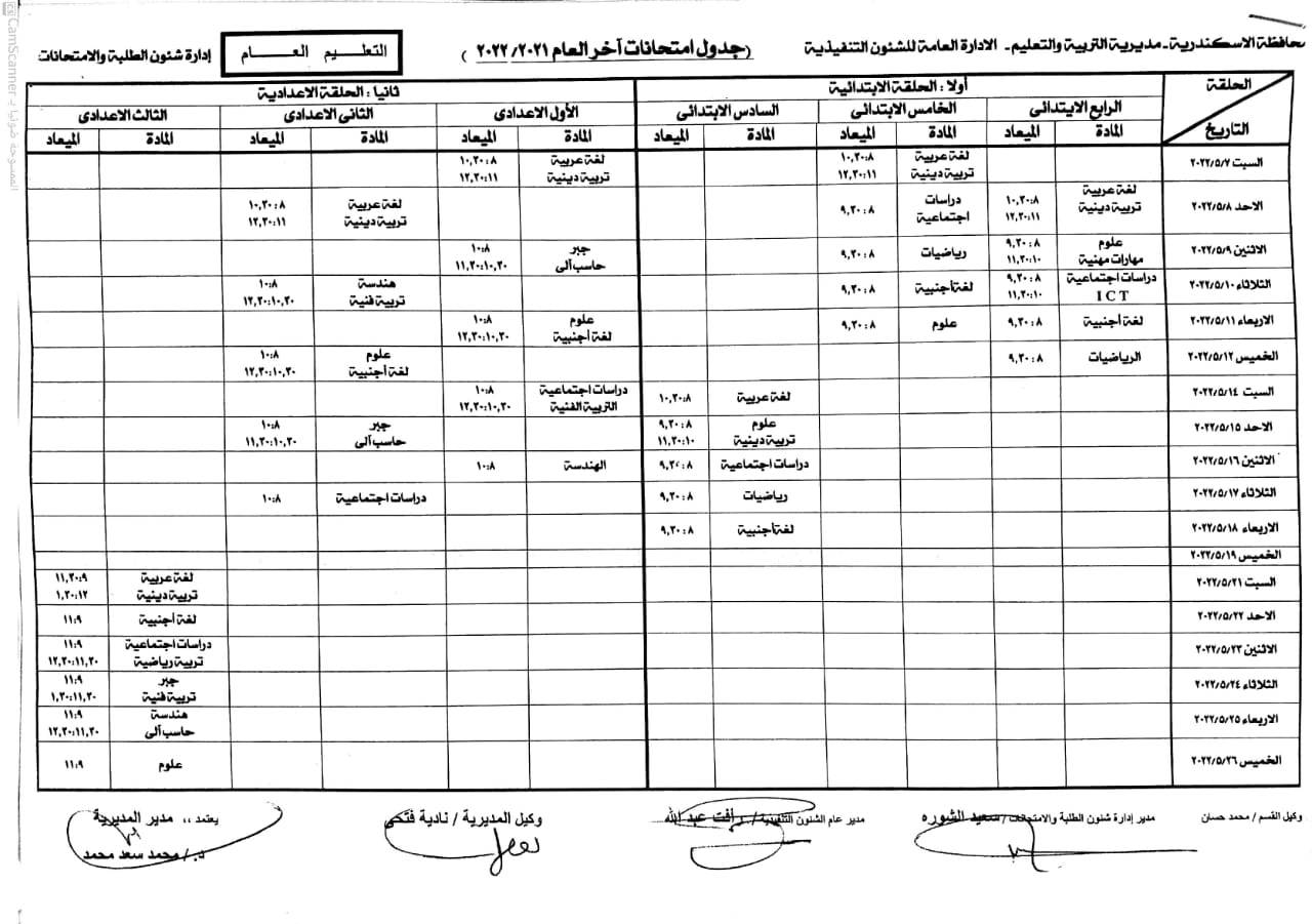 ننشر جدول امتحانات الفصل الدراسي الثاني لصفوف النقل بالإسكندرية