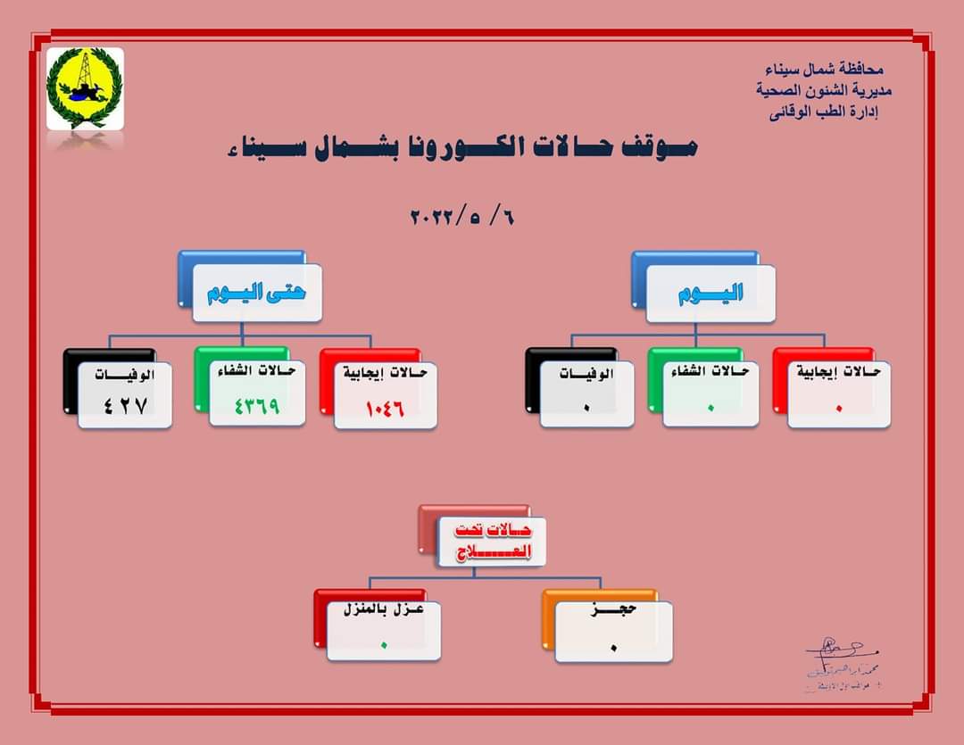 شمال سيناء تسجل صفر إصابات ووفيات بكورونا