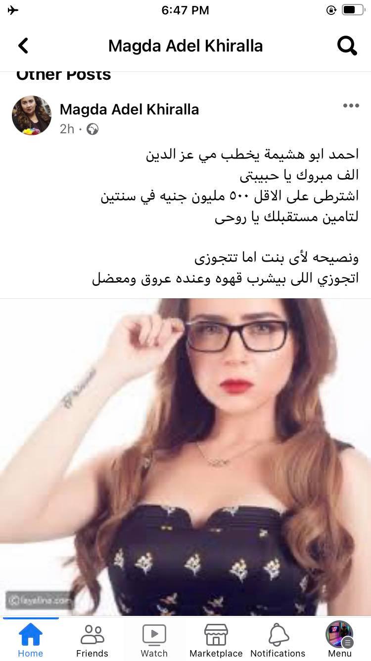 تعرضت الناقدة ماجدة خير الله لاختراق حسابها الشخصي على موقع التواصل الاجتماعي "فيس بوك"، حيث نشر حسابها منشورًا يفيد بخطوبة رجل الأعمال أحمد أبو هشيمة من الفنانة مي عز الدين، بعدما تداول أنباء تفيد بانفصاله من ياسمين صبري وجاء نص المنشور كالآتي: “أحمد أبو هشيمة يخطب مي عز الدين.. ألف مبروك يا حبيبتي.. اشترطي على الأقل ٥٠٠ مليون جنيه في سنتين لتأمين مستقبلك يا روحي.. ونصيحة لأي بنت لما تتجوزي.. اتجوزي اللي بيشرب قهوة وعنده عروق ومعضل”.