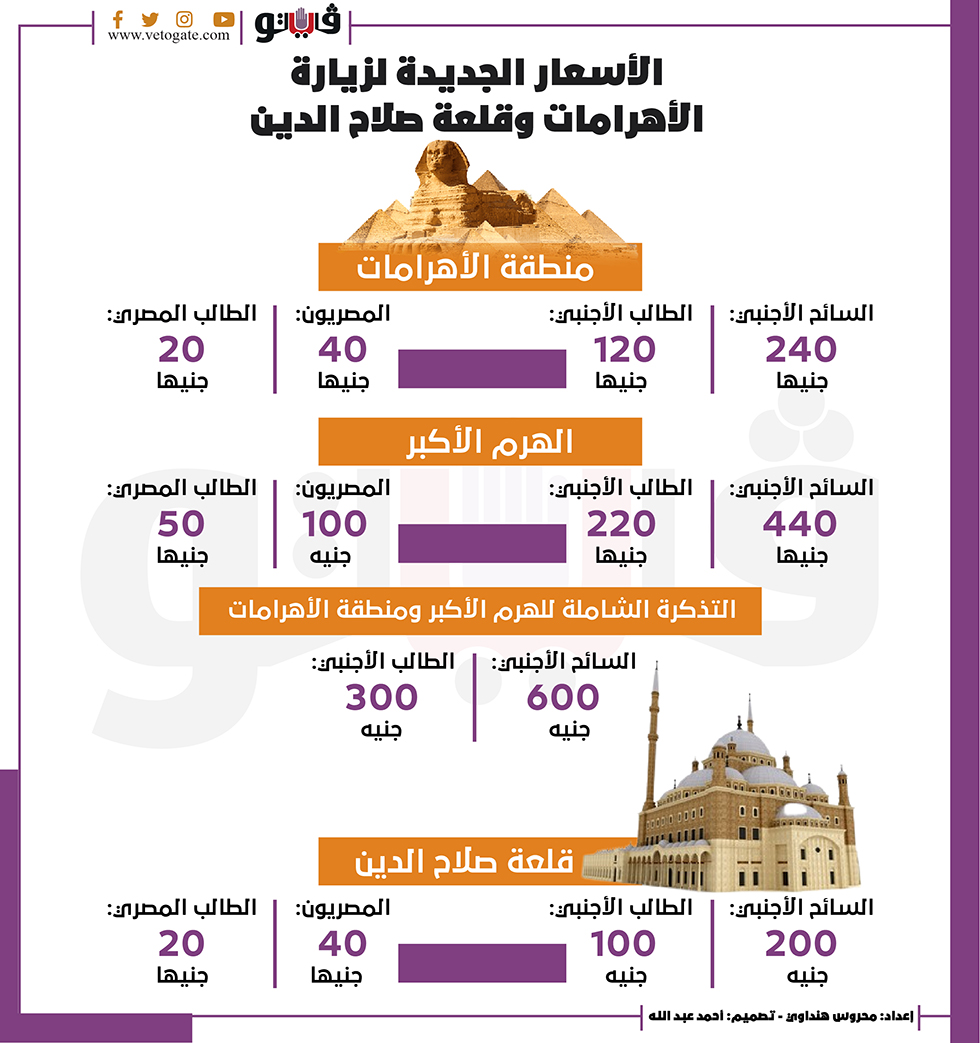 الأسعار الجديدة لزيارة الأهرامات وقلعة صلاح الدين | انفوجراف الأحد 08/مايو/2022 - 03:09 م 5/8/2022 3:09:44 PM الأهرامات محروس هنداوي شارك طباعة 18 حجم الخط شارك طباعة الهرم الأهرامات قلعة صلاح الدين منطقة الأهرامات منطقة الأهرام الهرم الأكبر المجلس الأعلي للأثار