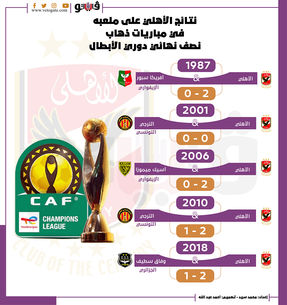 نتائج الأهلي على ملعبه في مباريات ذهاب نصف نهائي دوري الأبطال | إنفوجراف السبت 07/مايو/2022 - 06:25 م 5/7/2022 6:25:50 PM الأهلي محمد سيد شارك طباعة 18 حجم الخط شارك طباعة دوري أبطال أفريقيا الأهلي دوري الابطال نصف نهائي دوري أبطال أفريقيا وفاق سطيف الجزائري
